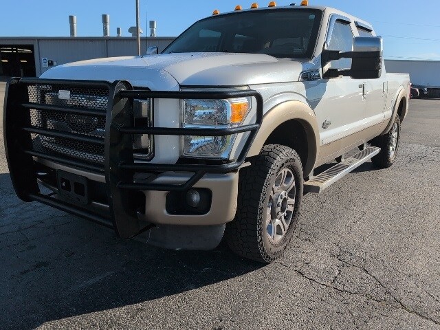 White Platinum Clearcoat Metallic 2014 Ford F-250SD King Ranch 4WD TorqShift 6-Speed Automatic with Overdrive Power Stroke 6.7L V8 DI 32V OHV Turbodiesel 4WD, 20" Chrome Clad Cast Aluminum Wheels, 6" Angular Chrome Step Bars, Accent Color Front Bumper, Accent Color Rear Bumper w/Step Pad, Adjustable pedals, Air Conditioning, Alloy wheels, Auto-dimming Rear-View mirror, Automatic temperature control, Body-Color Lower Bodyside Moldings, Brake assist, Bumpers: chrome, Chrome Exhaust Tip, Colored Front & Rear Rancho Branded Shocks, Compass, Console, Delay-off headlights, Driver door bin, Driver vanity mirror, Dual front impact airbags, Dual front side impact airbags, Electronic Stability Control, Engine Block Heater, Exterior Parking Camera Rear, Extra Heavy-Duty 200-Amp Alternator, Front anti-roll bar, Front dual zone A/C, Front fog lights, Front reading lights, Fully automatic headlights, FX4 Off-Road Package, GVWR: 10,000 lb Payload Package, Heated door mirrors, Hill Descent Control, Illuminated entry, King Ranch Chaparral Leather-Wrapped Steering Wheel, King Ranch w/Chrome Package, Leather steering wheel, Low tire pressure warning, Memory Power Adjustable Pedals, Navigation System, Navigation System w/HD & Satellite Broadcast, Order Code 608A, Outside temperature display, Overhead airbag, Overhead console, Painted Body Color Grille w/Chrome Insert, Panic alarm, Passenger door bin, Passenger vanity mirror, Power door mirrors, Power driver seat, Power passenger seat, Power steering, Power windows, PowerScope Trailer-Tow Mirrors, Rear Parking Sensors, Rear reading lights, Rear seat center armrest, Rear step bumper, Rear window defroster, Remote keyless entry, Remote Start System, Roof Clearance Lights, Security system, Speed control, Split folding rear seat, Steering wheel mounted audio controls, Tachometer, Telescoping steering wheel, Tilt steering wheel, Traction control, Trip computer, Turn signal indicator mirrors, Unique Chrome Mirror Caps, Unique King Ranch Leather Front Seats, Universal Garage Door Opener, Upfitter Switches (4), Variably intermittent wipers. Wood Motor is proud to serve our communities in Southwest Missouri, Northwest Arkansas, Northeast Oklahoma, and Southeast Kansas. The ultimate commitment to our customers is to deliver an experience that's with ease in negotiation, a transparent buying process, while also earning a customer for life. Recent Arrival!