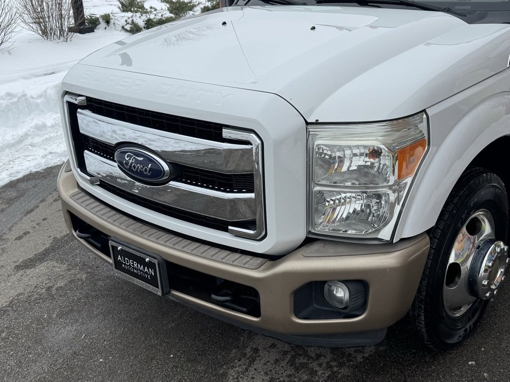 2014 Ford F-350SD King Ranch DRW. 2014 Ford F-350 Super Duty Lariat Crew Cab DRW 4x2 finished in Oxford White with Adobe Leather interior, powered by the legendary 6.7L Power Stroke V8 Turbo Diesel paired with a 6-speed automatic transmission, built for serious towing, hauling, and heavy-duty performance. This dually F-350 Lariat is loaded with premium features including leather seating, heated and cooled front seats, power adjustable pedals, memory seating, remote start, navigation system, backup camera, trailer sway control, trailer brake controller, fifth wheel hitch prep, tow hooks, rear parking sensors, power sliding rear window, dual-zone climate control, SYNC with MyFord Touch, premium Sony audio, power driver and passenger seats, chrome exterior accents, cab steps, and spray-in bedliner compatibility. Known for its massive torque, reliability, and durability, this Ford Super Duty diesel dually is ideal for RV towing, gooseneck trailers, construction, and commercial use, making it one of the most trusted heavy-duty trucks on the road. At Alderman Automotive, we take pride in being your trusted source for quality used cars, trucks, and SUVs in Fishers, Indiana. We specialize in pre-owned vehicle sales, financing, and service, offering a transparent, family-owned buying experience built on decades of automotive excellence. If you are asking 'what is my trade worth,' we have a team that can help with that. Our dealership is conveniently located at 13875 Trade Center Drive, Fishers, IN 46038, serving customers throughout Indianapolis, Carmel, Noblesville, Westfield, Zionsville, McCordsville, and the greater Central Indiana area.