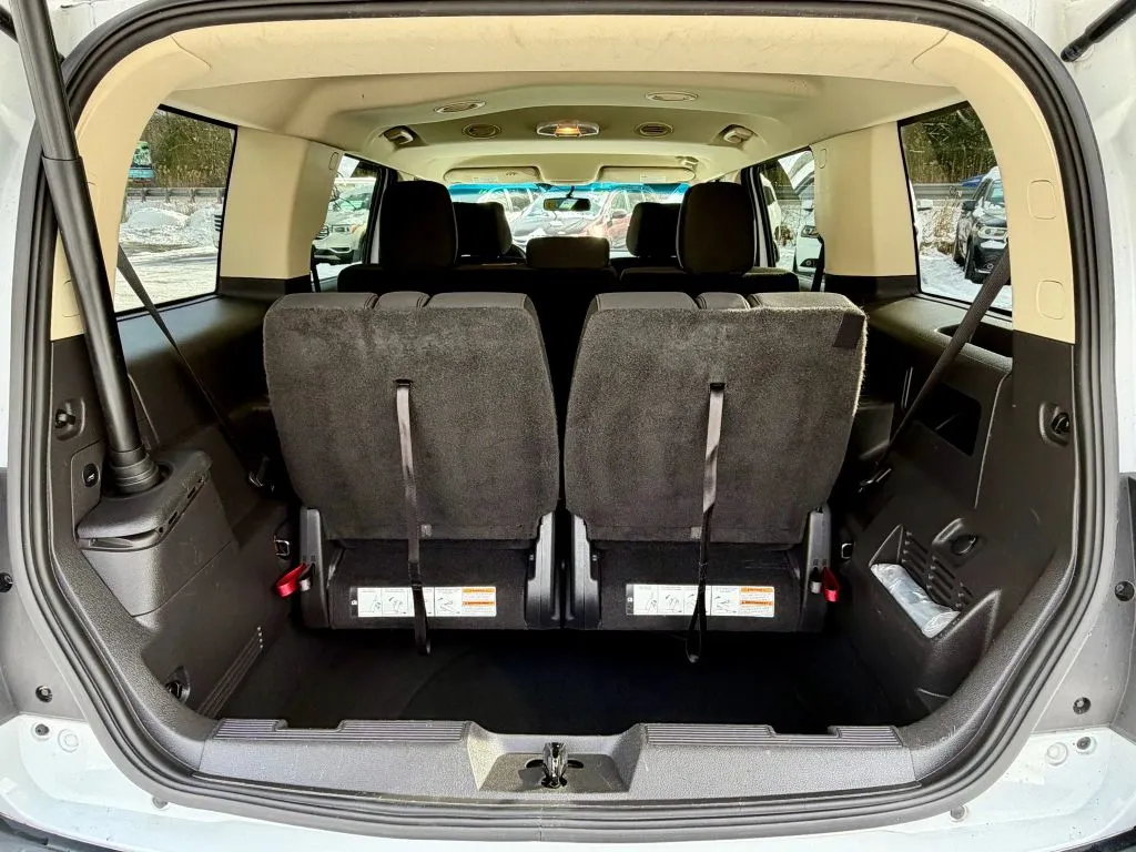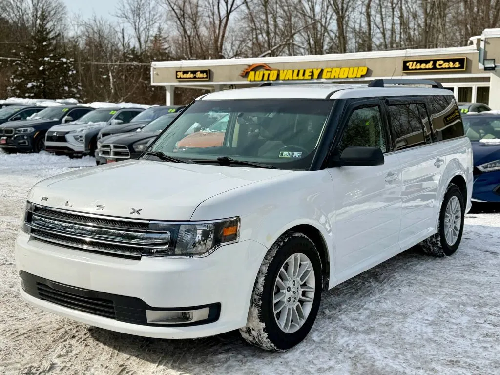 This used 2014 Ford Flex SEL Sport Utility 4D offers a compelling blend of versatility, comfort, and modern features, making it an excellent choice for families and adventure seekers alike. With a striking White Platinum Metallic Tri-Coat exterior and a sleek black interior, this SUV combines style with practicality. Powered by a 3.5-liter V6 engine delivering 287 horsepower and 254 lb-ft of torque, paired with a smooth 6-speed automatic transmission and all-wheel drive, it ensures confident handling in various driving conditions. Despite its used status, the vehicle has been well-maintained, with 90,449 miles on the odometer, providing a reliable and affordable option for those seeking a spacious and capable family vehicle. This used Flex combines functionality, technology, and style to meet the demands of modern driving.