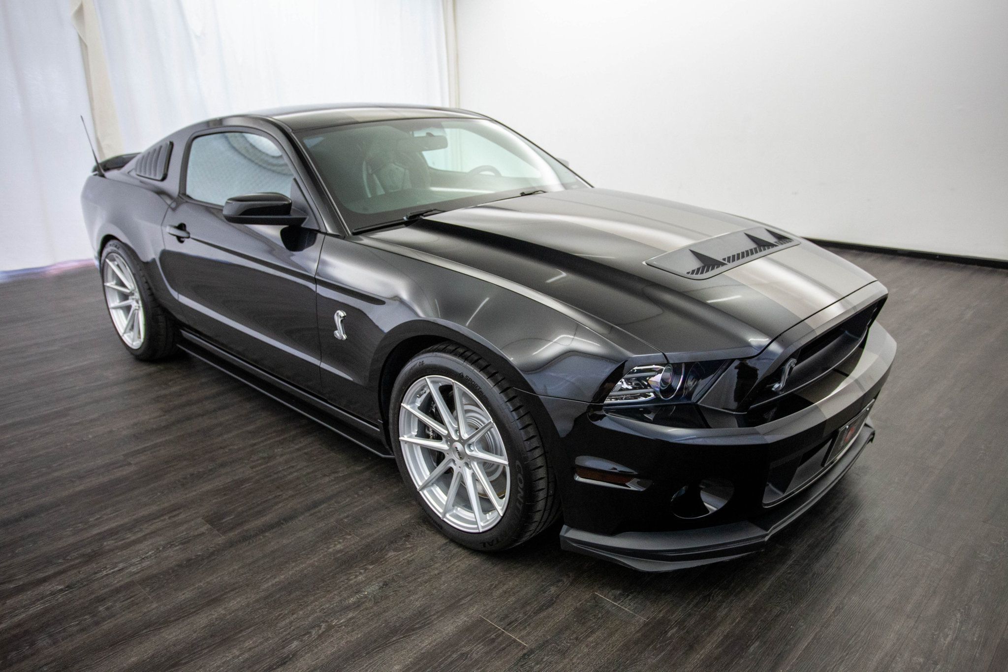 2014 Shelby GT500. With only 18k miles, this 2014 Ford Shelby GT500 is a modern muscle legend that delivers raw power and unmistakable presence. Finished in sleek Black accented by striking dark bronze racing stripes, it captures attention immediately while showcasing the aggressive styling that defines the Shelby name. Under the hood lives the ferocious 5.8L supercharged V8 paired with the legendary Tremec 6-speed manual transmission, delivering breathtaking acceleration and a driving experience that demands to be felt, not just driven. Inside, the black leather interior blends performance and comfort, highlighted by supportive Recaro seats that keep you planted during spirited driving. A touchscreen radio with navigation adds modern convenience, while the auto-dimming rearview mirror and thoughtful cabin design keep the focus on the road ahead. Rolling on aftermarket TSW wheels wrapped in Continental tires, this GT500 carries a bold stance that perfectly complements its immense performance capability. Low mileage, iconic styling, and one of the most powerful factory Mustangs ever built make this Shelby a true enthusiast's car.