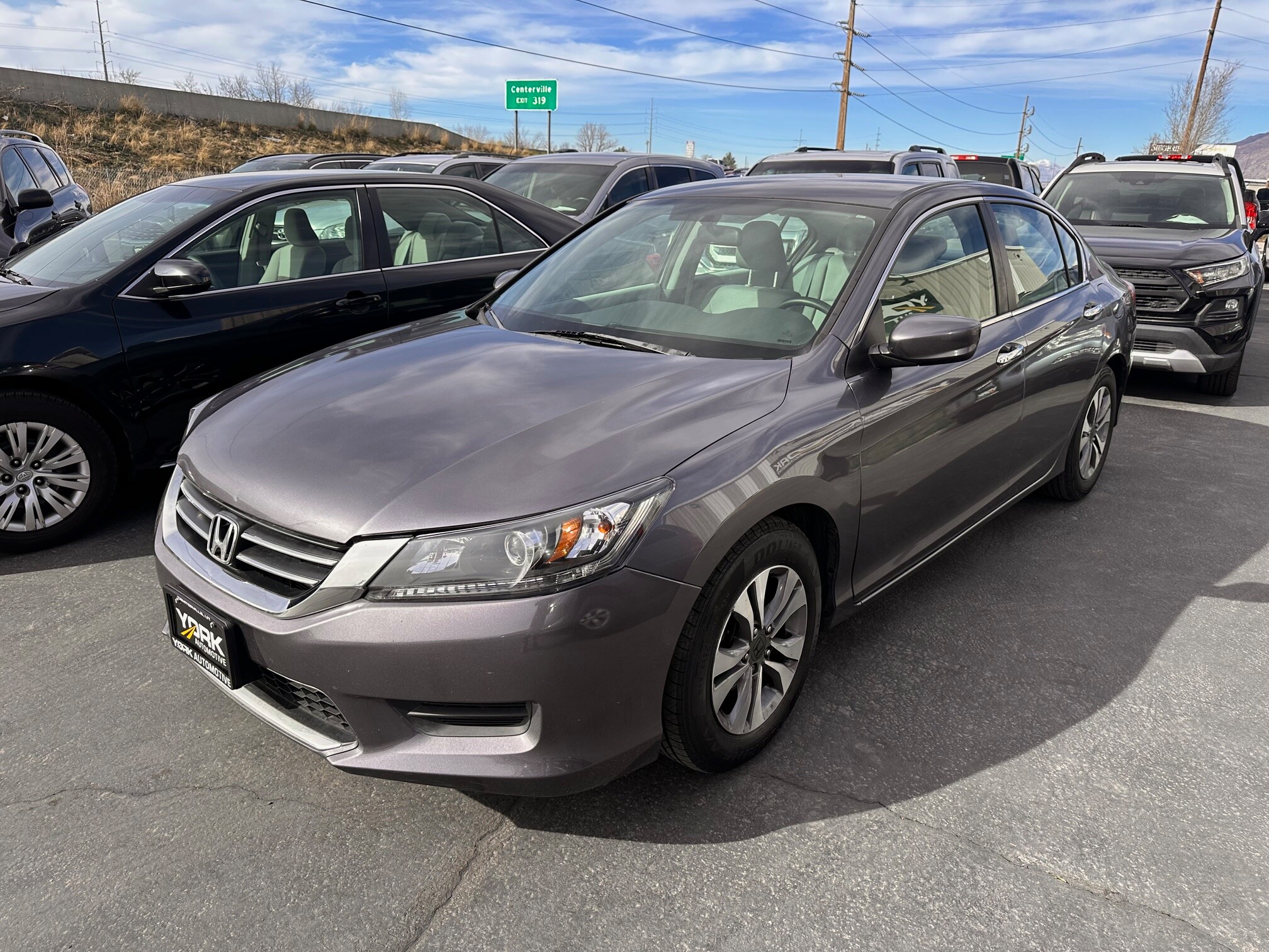 2014 Honda Accord LX, Clean Title. Low 63k Miles. Don’t miss out on the reliability of a Honda Accord! It comes fully equipped with Automatic Transmission, Power Windows and Locks, Cruise Control, Keyless Entry. We have a huge inventory of Japanese import cars for sale right now! See them all at york-automotive.com. We are located conveniently off I 15 at 825 South Frontage Road in Centerville, UT 84014. Take exit 319 off I 15. We are a no pressure, local family owned dealership that specializes in selling low mileage, clean title, great quality, Japanese import cars at low prices.