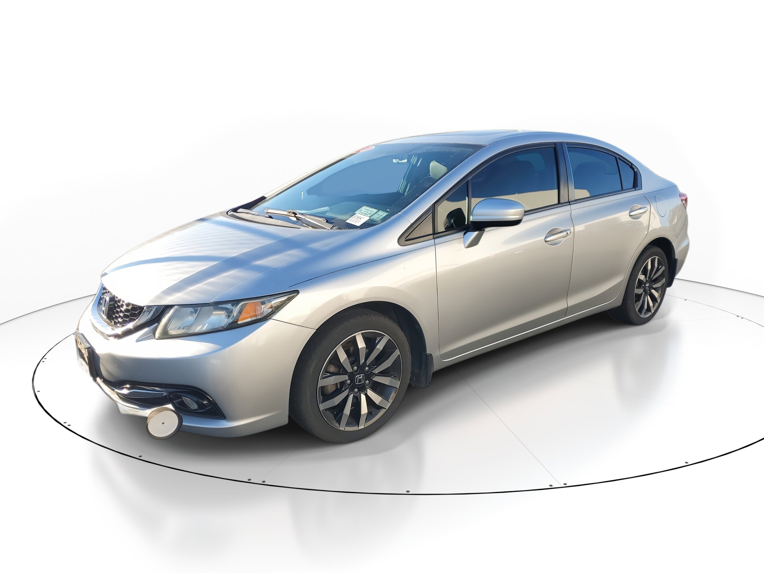 2014 Honda Civic 1.8L I4 SOHC 16V i-VTEC Silver Leather. This vehicle also comes equipped with: Leather, 17 Alloy Wheels, 4-Wheel Disc Brakes, 6 Speakers, ABS brakes, Air Conditioning, Alloy wheels, Automatic temperature control, Brake assist, Bumpers: body-color, CD player, Delay-off headlights, Driver door bin, Driver vanity mirror, Dual front impact airbags, Dual front side impact airbags, Electronic Stability Control, Exterior Parking Camera Rear, Four wheel independent suspension, Front anti-roll bar, Front Bucket Seats, Front Center Armrest, Front fog lights, Front reading lights, Fully automatic headlights, Heated door mirrors, Heated front seats, Illuminated entry, Leather Seat Trim, Low tire pressure warning, Occupant sensing airbag, Outside temperature display, Overhead airbag, Panic alarm, Passenger door bin, Passenger vanity mirror, Power door mirrors, Power driver seat, Power moonroof, Power steering, Power windows, Radio data system, Rear anti-roll bar, Rear seat center armrest, Rear window defroster, Reclining Heated Front Bucket Seats, Remote keyless entry, Security system, Speed control, Speed-sensing steering, Split folding rear seat, Steering wheel mounted audio controls, Tachometer, Telescoping steering wheel, Tilt steering wheel. FWD CVT Recent Arrival! Priced below KBB Fair Purchase Price! 30/39 City/Highway MPG. We offer Market Based Pricing, so please call to check on the availability of this vehicle. We'll buy your vehicle, even if you don't buy ours!