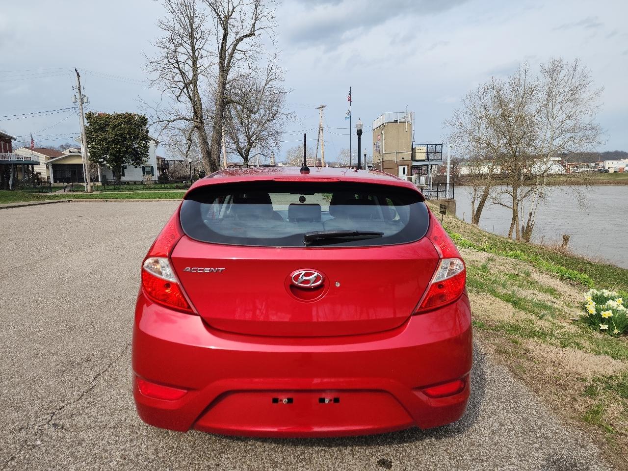 Get ready to hit the road in style with this vibrant Red 2014 Hyundai Accent! This compact yet spacious sedan is perfect for both city cruising and long highway drives. Safety is a top priority in this Hyundai Accent, with fantastic features like child safety door locks, ABS brakes, and multiple airbags strategically placed throughout the vehicle to keep you and your loved ones protected. The electronic brake assistance and traction control further enhance your driving experience, providing peace of mind wherever you go. Unlock convenience with keyless entry and power door locks, making it a breeze to hop in and hit the road. The intuitive steering wheel mounted controls ensure your focus stays on the drive ahead, while the cruise control allows you to relax and enjoy the ride. Inside, you'll find a comfortable and cool interior thanks to the air conditioning system. The tachometer and trip computer keep you informed about your driving stats, and the power windows make adjusting the airflow a cinch. Illuminate the path ahead with the automatic headlights and fog lights, ensuring visibility no matter the weather conditions. The rear spoiler not only adds a sporty flair to the exterior but also enhances aerodynamics for a smoother drive. Rolling on sleek alloy wheels, this Hyundai Accent is sure to turn heads wherever you go. The second row folding seat and cargo area cover provide ample storage space for all your gear, making it perfect for road trips and daily errands alike. Backed by a Carfax report, you can drive with confidence knowing the vehicle's history is transparent and reliable. Don't miss out on the opportunity to make this dynamic and reliable Red 2014 Hyundai Accent yours today!