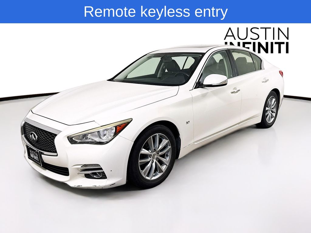 Moonlight White 2014 INFINITI Q50 RWD 3.7L V6 DOHC 24V Full Safety Inspection Check. The 2014 INFINITI Q50 RWD typically featured a 3.7L V6 engine with 328 hp and 269 lb-ft of torque, paired with a 7-speed automatic transmission, achieving around 20/29 city/highway MPG, and came standard with rear-wheel drive, with options for sport-tuned suspension and upgraded wheels/brakes on Sport models, all wrapped in a luxury sedan design. This vehicle is equipped with our Austin INFINITI Protection Package $999 -Battery4Life: Ensuring you never have to worry about unexpected battery issues (Gas Vehicles Only) OR -PDS Premier Defense: 1-Year Exterior Paint Protection Preserving the finish with an extra layer of durability against the elements! Recent Arrival! 20/29 City/Highway MPG