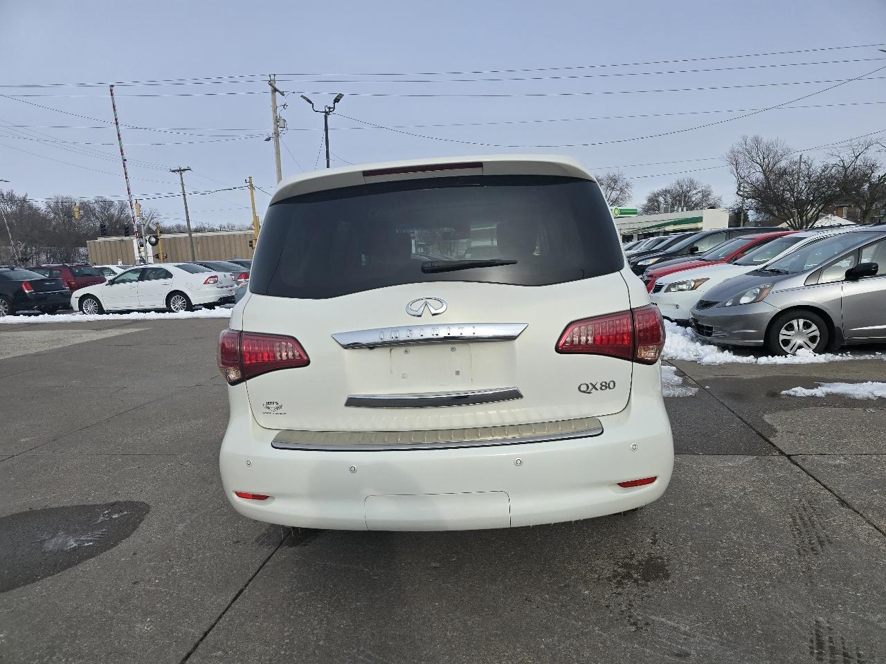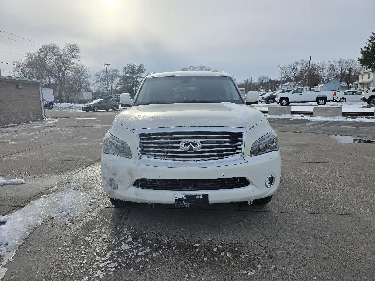 Step into luxury with this sleek and stylish 2014 Infiniti QX80! This vehicle is a shining example of sophistication, with its pristine white exterior and spacious interior that exudes elegance and comfort. The powerful engine ensures a thrilling driving experience every time you hit the road, while the advanced technology features keep you connected and entertained on the go. What sets this Infiniti QX80 apart from the rest is the fact that a Carfax report is available, giving you peace of mind knowing the vehicle's history and ensuring you're making a smart investment. Whether you're cruising through the city streets or embarking on a weekend getaway, this Infiniti QX80 is sure to turn heads and make a lasting impression wherever you go. Don't miss out on the opportunity to own this luxurious and reliable Infiniti QX80 - schedule a test drive today and experience the ultimate in driving pleasure! Visit Jeff's Car Corner online at www.jeffscarcorner.com to see more pictures of this vehicle or call us at 563-323-5170 today to schedule your test drive. Please note that the payment calculator is for your estimate purposes only. Actual interest rates and terms will be set by the financial source after a credit application is processed.