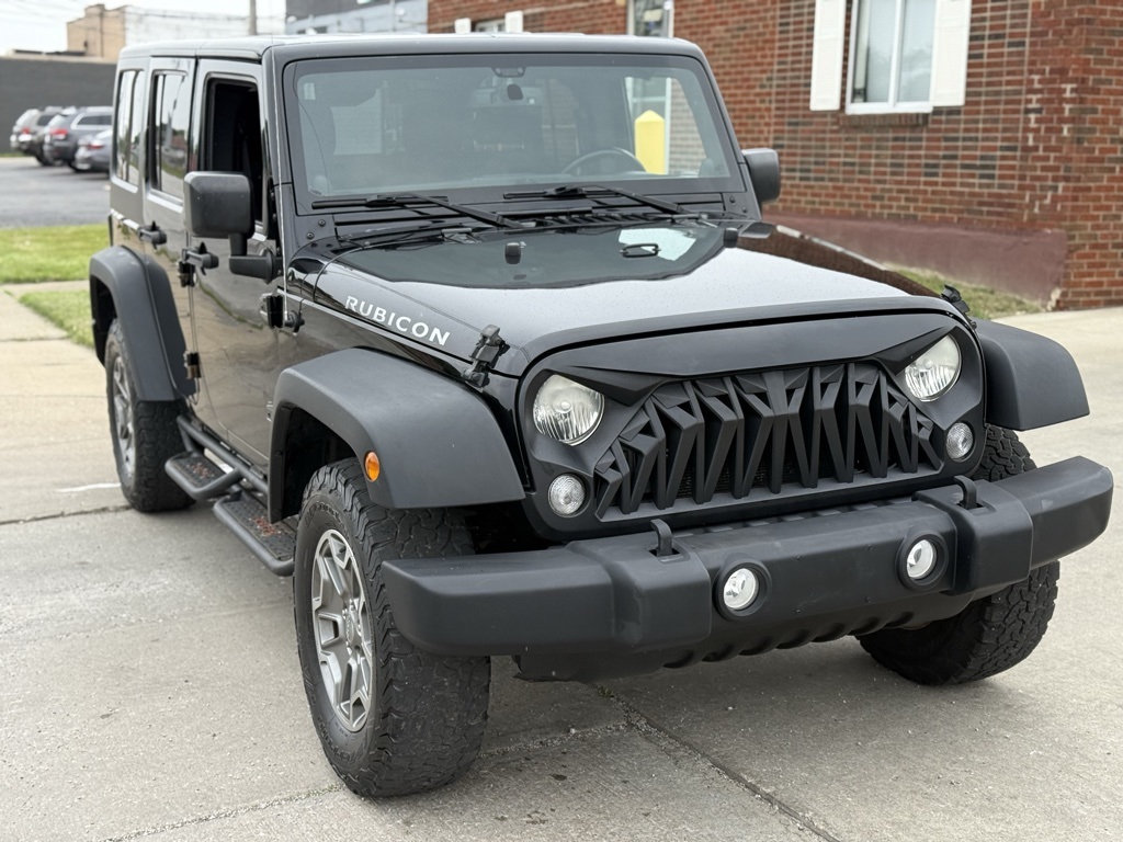 This vehicle is located at E Drive Motors. We are mainly by appointment only. You can view our entire selection of inventory online or call to schedule a showing at Edrivemotors.com We offer financing for all types of credit and we do accept trade ins. Carfax always available on our website. We do ship out of state. Ask us about a shipping quote if you do not live near us or ask us for a ride from the airport (CLE) which is always complementary when available. Serving Cleveland and surrounding areas, Cuyahoga County, Lake County, Summit County, Stark Counting, Geauga County and Ashtabula Counties. This Jeep Wrangler has many features and is well equipped including, 40GB Hard Drive w/28GB Available, Class II Receiver Hitch, Connectivity Group, Max Tow Package, Quick Order Package 24R, Remote USB Port, Tire Pressure Monitoring Display, Trailer Tow w/4-Pin Connector Wiring, Uconnect Voice Command w/Bluetooth, Vehicle Information Center. 2014 Black Clearcoat Jeep Wrangler Unlimited Rubicon 3.6L V6 24V VVT Clean CARFAX. Priced below KBB Fair Purchase Price! Odometer is 45904 miles below market average!