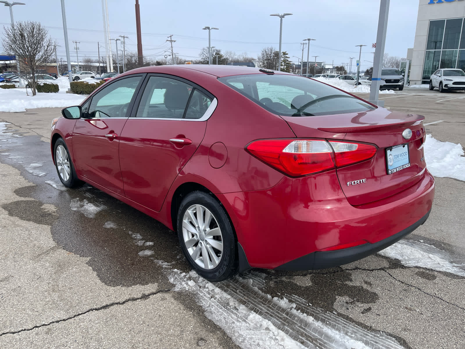 EPA 36 MPG Hwy/24 MPG City! Crimson Red exterior and Black interior. Smart Device Integration, CD Player, Bluetooth®, Satellite Radio, Back-Up Camera, Aluminum Wheels, iPod/MP3 Input. Kia EX with Crimson Red exterior and Black interior features a 4 Cylinder Engine with 173 HP at 6500 RPM. No matter the body style, one of the biggest draws to the new car is the way it looks. We usually don't talk about styling, given its subjective nature. But we doubt well find much argument when we say the Forte is one of the sharpest-looking cars in its segment. Reduced from $8,995. This Forte is priced $700 below J.D. Power Retail. It's All Good At Tom Wood!
