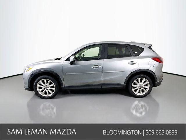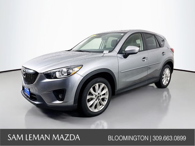 Recent Arrival! 2014 Mazda CX-5 Grand Touring Liquid Silver Metallic, leather, heated seats, power moonroof, rear view camera, hands free Bluetooth, lane keep assist, blind spot monitoringing, Bose stereo. Call Sam Leman Mazda at 866-691-2647 to set up a test drive. Odometer is 9562 miles below market average! 25/32 City/Highway MPG. At Sam Leman Mazda of Bloomington, serving Peoria, Morton, Champaign, Springfield and Lincoln IL, we offer new Mazda cars in Bloomington, along with used cars, trucks and SUVs by top manufacturers. Our sales staff will help you find that new or used car you are searching for in Bloomington.