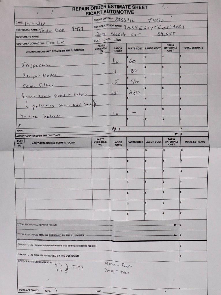 The 2014 Mazda CX-5 Touring delivers a well-balanced mix of efficiency, comfort, and everyday versatility in a sleek compact SUV design. Powered by a 2.5L SKYACTIV-G 4-cylinder engine paired with a 6-speed SKYACTIV-Drive automatic transmission with Sport Mode, it offers smooth, responsive performance for daily commuting and weekend travel. Inside, the cabin features Black cloth seating with sport-shaped front seats and a clean, driver-focused layout supported by intuitive audio and convenience features. Available now at Ricart Automotive Used Car Factory. Recent Arrival! Clean CARFAX. Soul Red Metallic 2014 Mazda CX-5 Touring 4D Sport Utility SKYACTIV® 2.5L 4-Cylinder DOHC 16V 25/32 City/Highway MPG 6-Speed Automatic FWD.