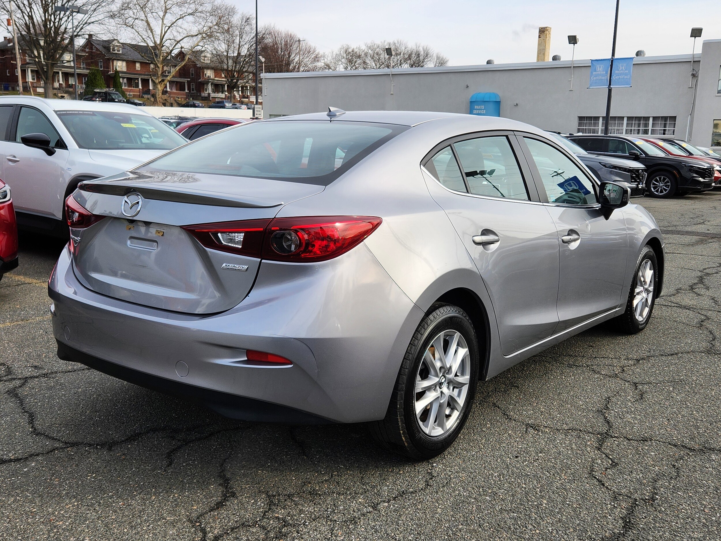1-owner new car trade, bought and serviced locally, satellite navigation with rear view back up camera, blind spot monitoring, cross-traffic alert, sun/moonroof, heated seats, Bluetooth. Value center car - we perform minimal recondition to pass PA state inspection. Additional maintenance and repairs may be needed. Technician noted a oil leak developing behind the timing cover (not being addressed prior to sale - item is as-is), 90 day limited powertrain warranty covering 50% of parts & labor, limited financing options due to age and mileage of vehicle. Recent arrival! 2014 Mazda Mazda3 i Grand Touring Liquid Silver Metallic FWD SKYACTIV-G 2.0L 4-Cylinder DOHC 16V. CARFAX One-Owner. Compare our price - we evaluate our pricing on every car against our competitors on a daily basis to ensure you are getting the best value. It's our hassle free haggle free market based pricing philosophy - we sell more cars and you save more money! Pricing does not include taxes, fees, and additional accessories. Please confirm availability and schedule a test drive today!