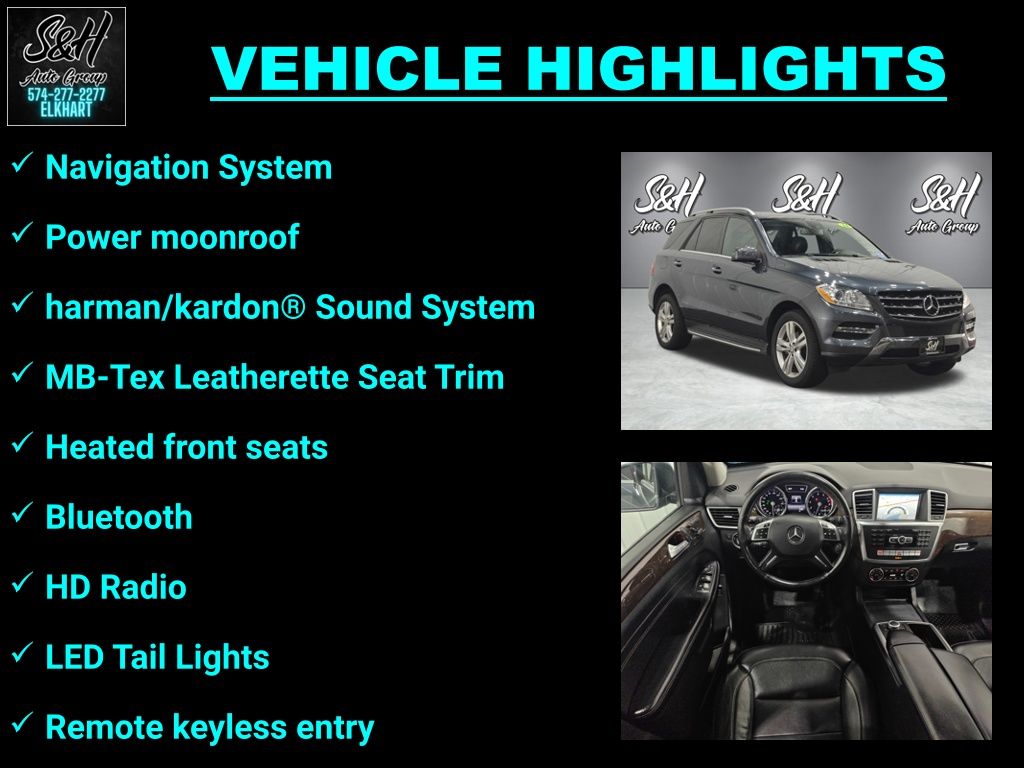 Treat yourself to a test drive in the 2014 Mercedes-Benz M-Class! It just arrived on our lot this past week! Mercedes-Benz prioritized handling and performance with features such as: tilt steering wheel, a roof rack, and power seats. A 3.5 liter V-6 engine pairs with a sophisticated 7 speed automatic transmission, and for added security, dynamic Stability Control supplements the drivetrain. You will have a pleasant shopping experience that is fun, informative, and never high pressured.