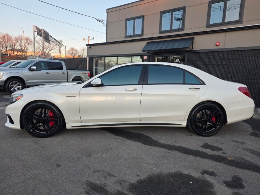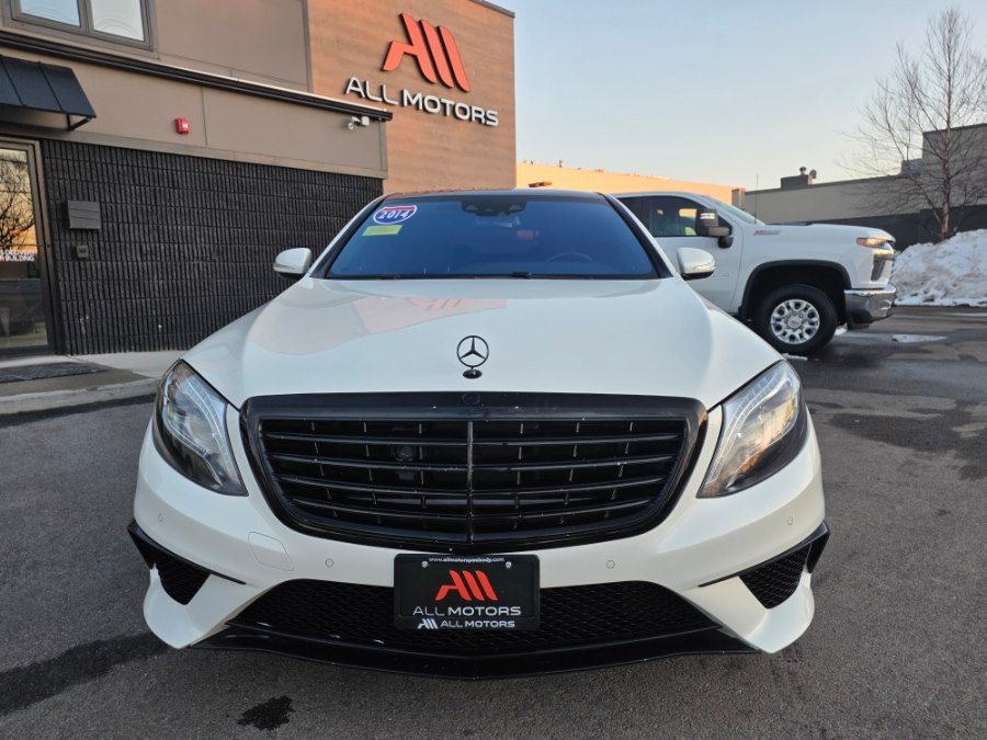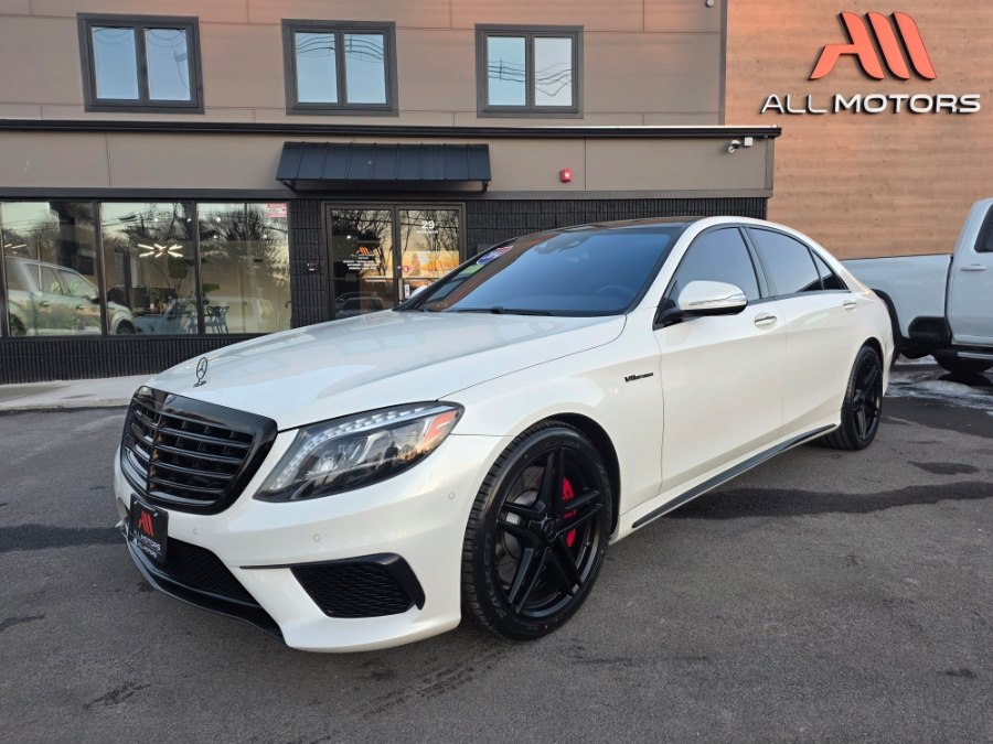 2014 Mercedes-Benz S-Class 4dr Sdn S 63 AMG 4MATIC, available for sale in Peabody, Massachusetts. This vehicle features a 5.5L DOHC Bi-Turbo 32-Valve V8 engine and full-time 4MATIC all-wheel drive. The Diamond White Metallic exterior is complemented by a Black leather interior. The car is equipped with an automatic transmission and a range of luxury and performance features. Please confirm the accuracy of the specifications provided above with the dealer's representative.