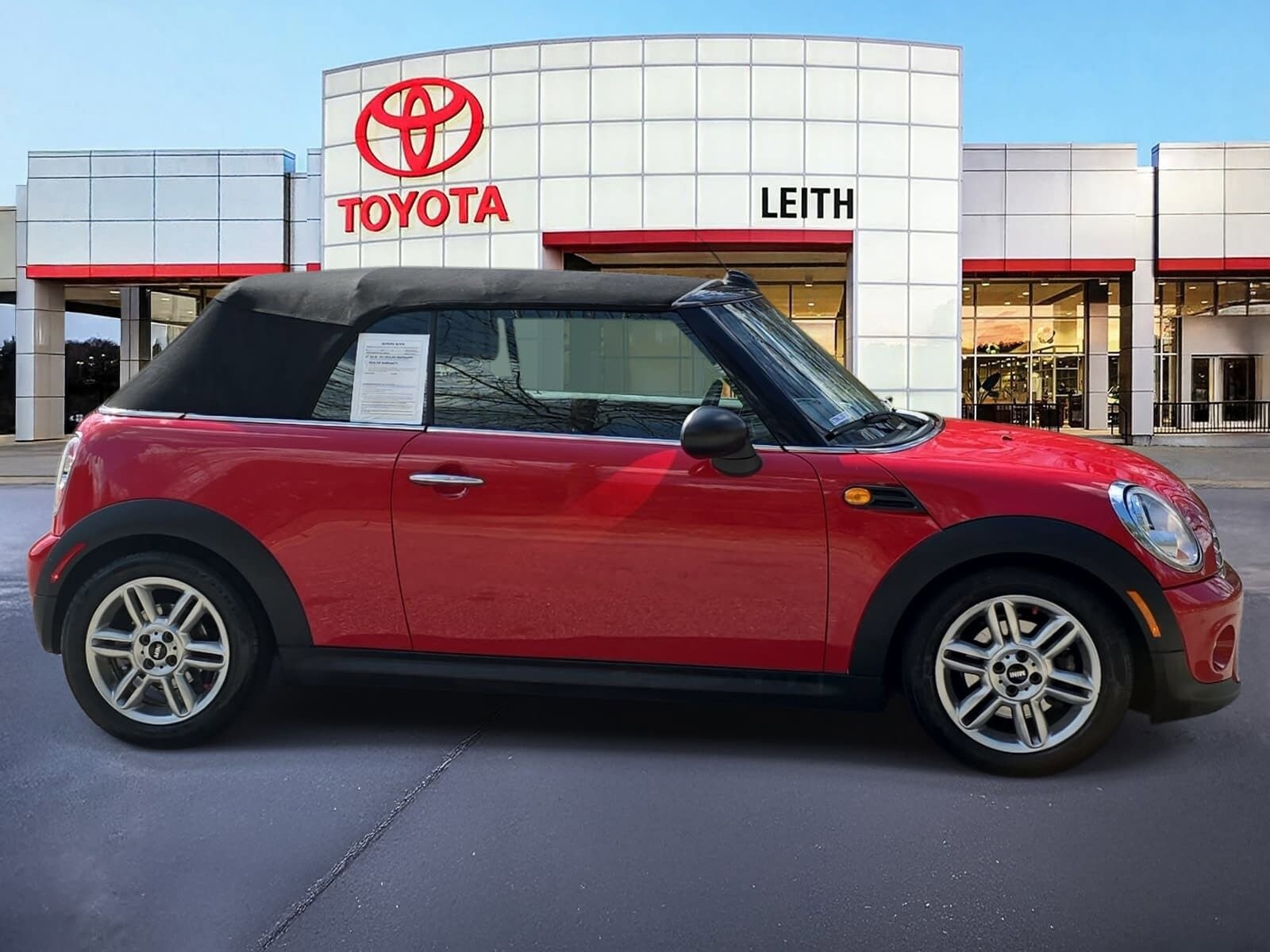 Clean Carfax. Chili Red 2014 Mini Cooper FWD 6-Speed Automatic 1.6L I4 DOHC 16V as is car, local trade in, leather, heated seats, must see to appreciate! AS-IS Leith Toyota is selling this vehicle as is with no warranty. We have done a North Carolina State Inspection and fluid check only. No other mechanical work has been done to this vehicle. We recommend that you get this vehicle checked out by a technician of your choice and at your expense before purchase. At Leith Toyota, our goal is to ensure that all of our customers are completely satisfied. Our team consists of true professionals who are dedicated to our customers. We challenge ourselves every day with standards of excellence to maintain customers for life. We take great pride being one of the very best in customer service and satisfaction, and continually strive to improve upon our performance.