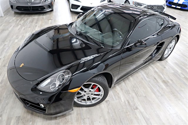 2014 Porsche Cayman Coupe with a clean Carfax and 6-speed manual transmission. Features include a 2.7L engine, premium package, and bi-xenon headlights.