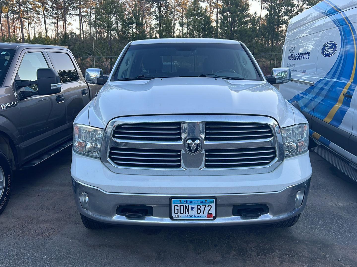 Thank you for choosing Butler Ford, this Bright White Clearcoat 2014 Ram 1500 Big Horn is a great choice! Check out the following: City 16/ Hwy 24. Quick Order Package 26X Big Horn ($3,000 value). Luxury Group. Power Multi-Function Foldaway Mirrors. Chrome Exterior Mirrors. Fog Lamps. Bright/bright Billets Grille. Chrome Tubular Side Steps by MOPAR. Bighorn Badge. Dual Rear Exhaust. Full Size Temporary Use Spare Tire. P275/60R20 BSW AS Tires. 20 X 8 Aluminum Chrome Clad Wheels. Tow Hooks. Locking Lug Nuts. Luxury Group. Overhead Console with UGDO. Rear View Auto Dim Mirror with Microphone. Sun Visors with Illuminated Vanity Mirrors. Auto Dim Exterior Mirrors. Power Heated Fold-Away Mirrors. 7 TFT Instrument Cluster. Glove Box Lamp. Ash Tray Lamp. Underhood Lamp. Exterior Mirrors with Supplemental Signals. Exterior Mirrors Courtesy Lamps. Power Folding Mirrors. Auto Dim Exterior Passenger Mirror. Rear Dome with On/off Switch Lamp. Steering Wheel Mounted Audio Controls. Leather Wrapped Steering Wheel.