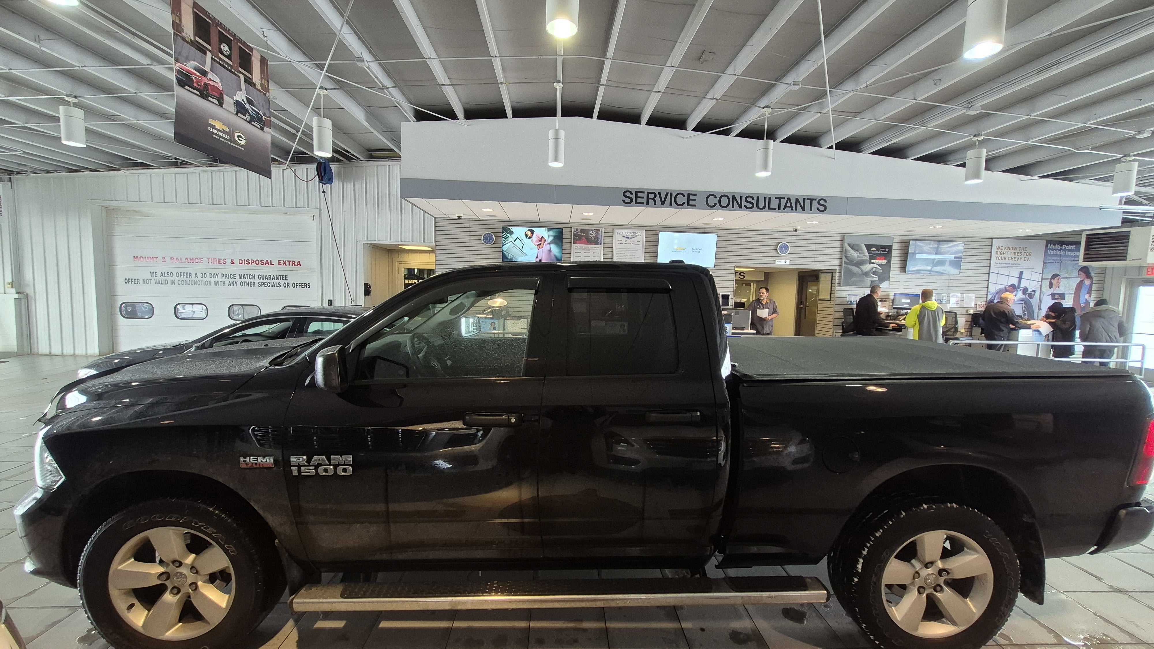 Black Clearcoat 2014 Ram 1500 Express Trailer Package, Local Trade, Tow Package, 4x4 / 4WD / 4 Wheel Drive / AWD, 1500 Express, 4D Quad Cab, HEMI 5.7L V8 Multi Displacement VVT, 8-Speed Automatic, 4WD, Black Clearcoat, Black Cloth, 1-Year SiriusXM Radio Service, 20" x 8.0" Aluminum Wheels, 40/20/40 Split Bench Seat, Body Color Front Fascia, Body Color Grille, Body Color Rear Bumper w/Step Pads, Cloth 40/20/40 Bench Seat, Delete Class IV Receiver Hitch, Delete Spray In Bedliner, Fog Lamps, For More Info, Call 800-643-2112, Front & Rear Floor Mats, Front Armrest w/Three Cupholders, Popular Equipment Group, Quick Order Package 26C Express, Rear Folding Seat, Remote Keyless Entry w/All-Secure, SIRIUSXM Satellite Radio. Odometer is 49170 miles below market average! At Sheboygan Auto, we walk it, with pride! Our Sales personnel are non-commissioned, which means we pay their wages, not you! If you are looking for a GMC, Chevrolet, or Cadillac we're a short drive away in Sheboygan. We are located on S. Business Drive, in the South part of town in Sheboygan, Wisconsin. We have a huge selection of GM vehicles for you to choose from. Our dealership is open 6 days a week, as well as our parts and service departments. Check out our hours and directions page, then make the drive to Sheboygan Chevrolet GMC Cadillac. You'll see why our Cadillac, Chevrolet, and GMC customers keep coming back to our dealership.