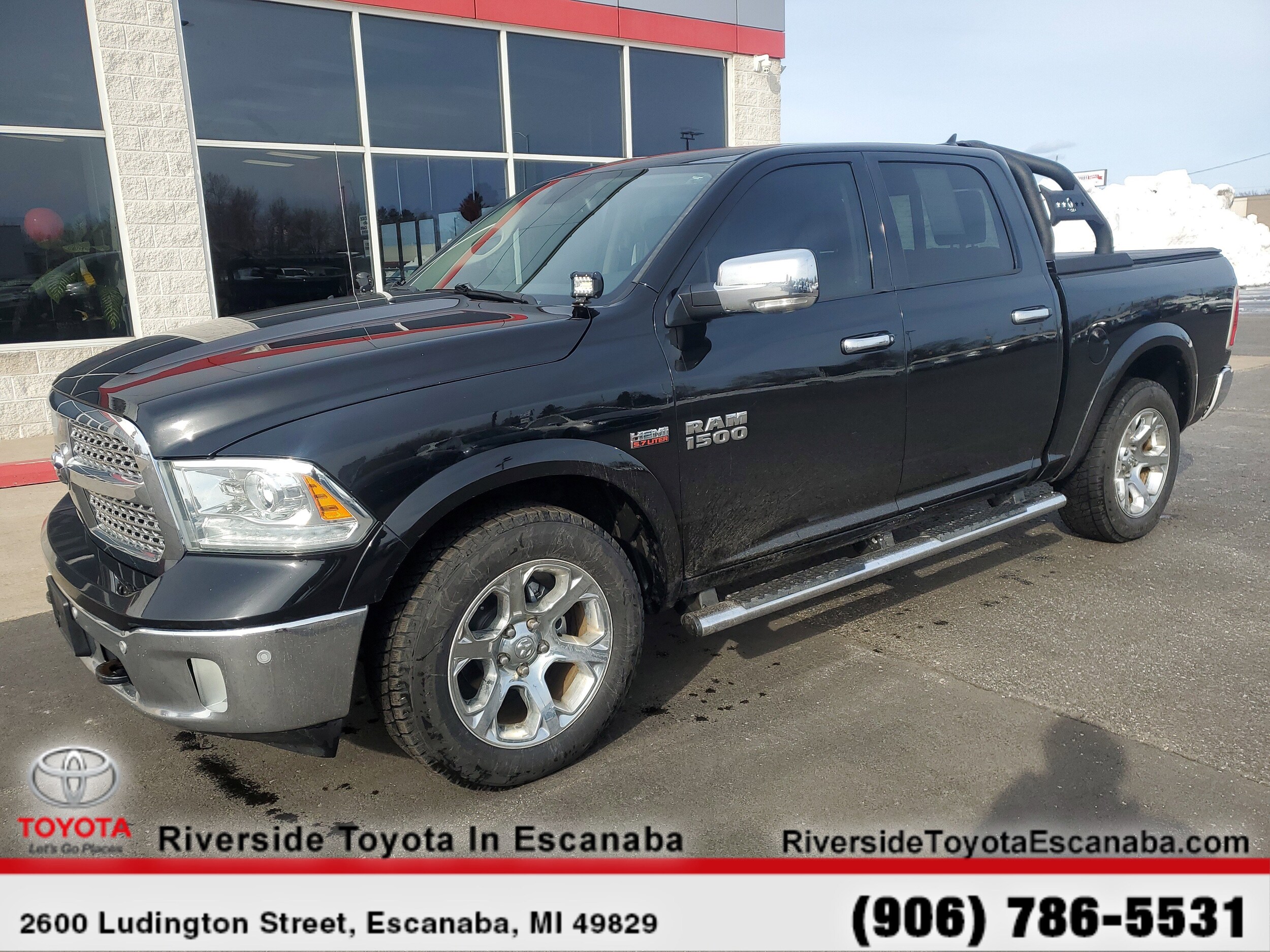 The 2014 Ram 1500 is our top pick in the full-size pickup segment, thanks to a winning combination of strong powertrains, a smooth ride and a well-trimmed cabin. Ram Laramie with Black Clearcoat exterior and Black interior features a 8 Cylinder Engine with 305 HP at 6350 RPM. Dealer shall in no way be held liable for any errors or omissions to be found on these web pages. Applicable state taxes, title, registration, and $280 documentary fees not included. Prices are subject to change without notice. All vehicles are subject to prior sale. We will do our best to keep all information current and accurate; however the dealership should be contacted by phone, e-mail or in person for final pricing and availability.