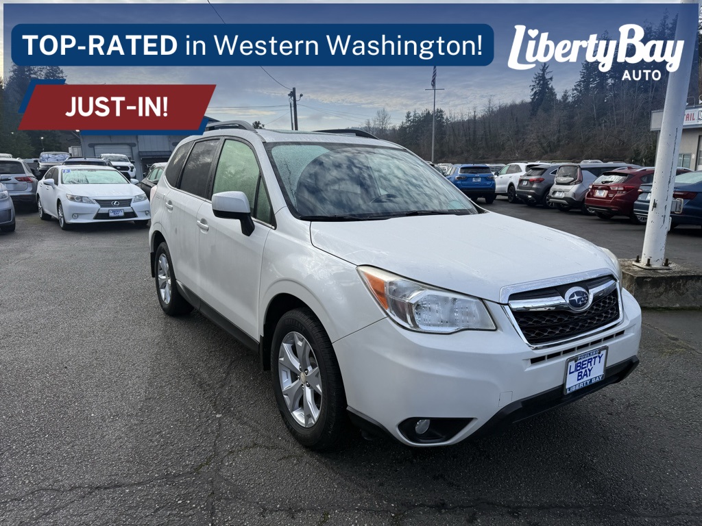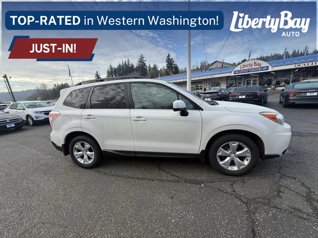 2014 Subaru Forester 2.5i Limited. Recent Arrival! Aha Infotainment, Navigation System, Power Liftgate, Power moonroof, Radio: HD AM/FM Stereo w/Single CD Player, Touch-Screen GPS Navigation System. 24/32 City/Highway MPG Odometer is 35267 miles below market average! Truly, Liberty Bay Auto Center is a one-stop shop for all your automotive needs. We also have a dedicated service department on site. There our team of experts work on a variety of vehicles using the highest-quality OEM parts, innovative software and industry leading equipment. Our team of experts are highly trained and can tackle anything your vehicle might need, from repair to maintenance. Stop by and see for yourself why Liberty Bay Auto Center continues to be the premier family owned dealership in the area! We are proud to serve drivers from all over, including Hansville, East Bremerton, Indianola, Port Orchard, Tracyton, Edmonds, Gig Harbor, Seattle, and Bainbridge Island, WA.