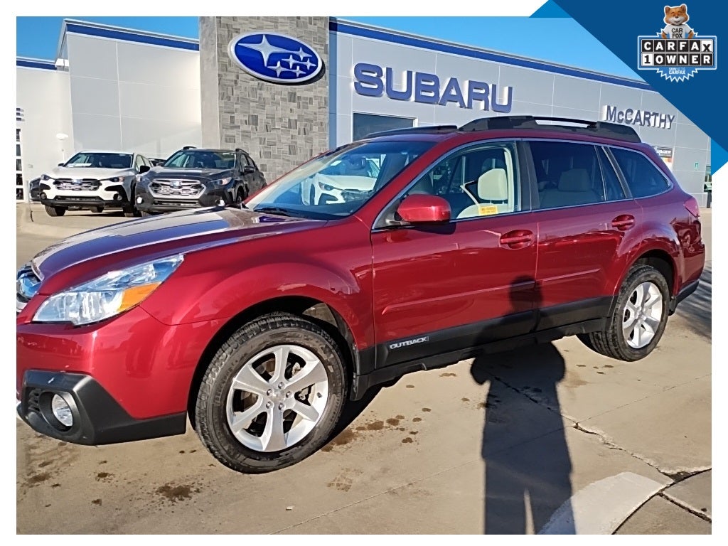 Meet the SUV that practically wrote the handbook on do-it-all dependability. This 2014 Subaru Outback 2.5i Limited blends rugged capability with refined comfort, making it just as confident on a snowy Kansas back road as it is cruising cross-country with the family (and the dog and the luggage and the snacks). Powered by Subaru's trusted 2.5L BOXER engine, this Outback delivers smooth power, excellent fuel efficiency, and legendary balance. Pair that with Symmetrical All-Wheel Drive, and you've got year-round confidence; rain, snow, gravel, or grocery-store parking lots don't stand a chance. The Lineartronic CVT keeps things quiet, efficient, and effortless on long drives. Subaru has always taken safety seriously, and this Outback is no exception. Expect peace of mind from features like advanced front, side, and curtain airbags, vehicle dynamics control, traction control, anti-lock braking system with electronic brake-force distribution, and strong crash-test ratings that helped Subaru earn its reputation for protecting families. It's the kind of vehicle that quietly says, I've got you, every mile of the way. The Limited badge isn't just for show. Inside, you'll find leather-trimmed seating with power-adjustable front seats, heated front seats (because winter happens), premium audio with Bluetooth connectivity, dual-zone automatic climate control, and a power moonroof to let the sunshine (or starlight) in. Comfortable? Absolutely. Practical? Always. The Subaru Outback has long been recognized for exceptional resale value, longevity, and owner loyalty. Many Subaru vehicles stay on the road well past 200,000 miles, and this one is just getting warmed up. This Outback is backed by the confidence of the McCarthy Subaru of Lawrence Certified Pre-Owned Program, meaning extra peace of mind comes standard. This Outback is backed by the confidence of the McCarthy Subaru of Lawrence Certified Pre-Owned Program, meaning extra peace of mind comes standard. This Outback is backed by the confidence of the McCarthy Subaru of Lawrence Certified Pre-Owned Program, meaning extra peace of mind comes standard. This Outback is backed by the confidence of the McCarthy Subaru of Lawrence Certified Pre-Owned Program, meaning extra peace of mind comes standard.