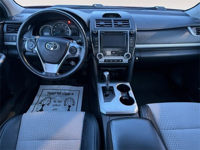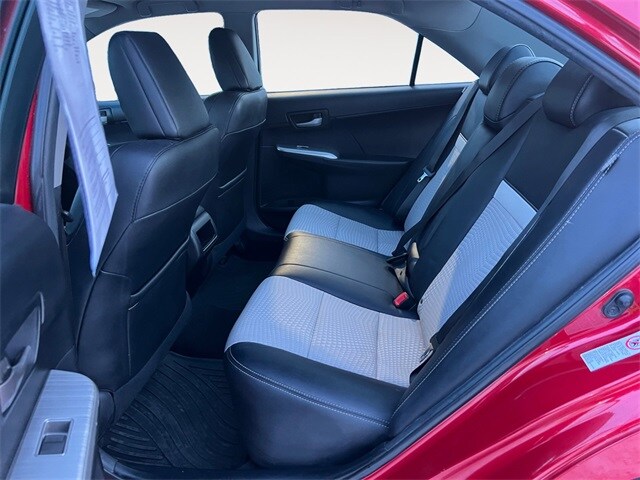 Barcelona Red Metallic 2014 Toyota Camry 2014.5 FWD 6-Speed Automatic 2.5L I4 SMPI DOHC Black/Ash 2-Tone, All Weather Floor Mats & Cargo Tray, 4-Wheel Disc Brakes, 6 Speakers, ABS brakes, Air Conditioning, Brake assist, Bumpers: body-color, CD player, Driver door bin, Driver vanity mirror, Dual front impact airbags, Dual front side impact airbags, Electronic Stability Control, Exterior Parking Camera Rear, Four wheel independent suspension, Front anti-roll bar, Front Bucket Seats, Front Center Armrest, Front reading lights, Knee airbag, Low tire pressure warning, Occupant sensing airbag, Outside temperature display, Overhead airbag, Overhead console, Passenger door bin, Passenger vanity mirror, Power door mirrors, Power steering, Power windows, Rear anti-roll bar, Rear seat center armrest, Rear side impact airbag, Rear window defroster, Speed control, Speed-sensing steering, Split folding rear seat, Steering wheel mounted audio controls, Tachometer, Telescoping steering wheel, Tilt steering wheel, Traction control, Black/Ash 2-Tone, All Weather Floor Mats & Cargo Tray. Priced below KBB Fair Purchase Price! Recent Arrival! 25/35 City/Highway MPG Awards: * 2014 KBB.com 10 Best Used Family Cars Under $15,000 * 2014 KBB.com 10 Best Late-Model Used Cars Under $15,000 * 2014 KBB.com 10 Best Hybrid Cars Under $30,000 * 2014 KBB.com Best Resale Value Awards