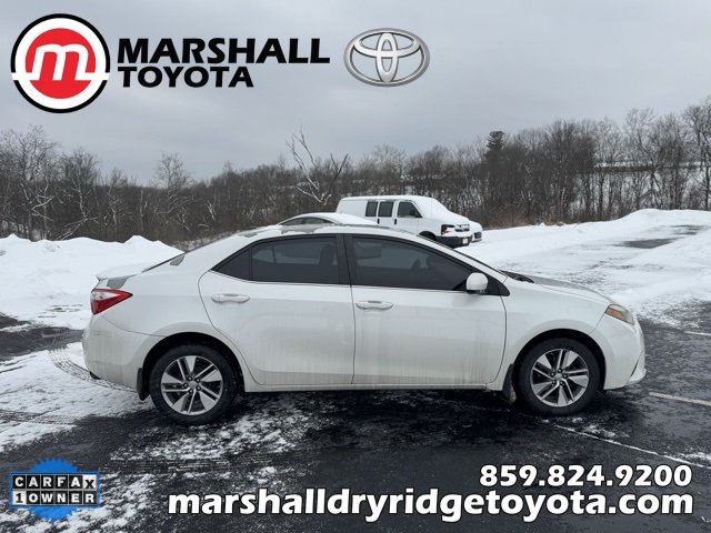 Marshall Dry Ridge Toyota is only 25 minutes south of Cincinnati, Oh! Carfax One-Owner. Local Trade, must finance with dealer approved financing to qualify for special price, non-smoker, Corolla ECO Premium, 4D Sedan, 1.8L I4 DOHC Dual VVT-i, CVT, FWD, Blizzard Pearl, 6 Speakers, ABS brakes, Air Conditioning, Alloy wheels, AM/FM radio, Automatic temperature control, Brake assist, Bumpers: body-color, CD player, Delay-off headlights, Driver Convenience Package, Driver door bin, Driver vanity mirror, Dual front impact airbags, Dual front side impact airbags, ECO Premium Package, Electronic Stability Control, Exterior Parking Camera Rear, Front anti-roll bar, Front Bucket Seats, Front Center Armrest w/Storage, Front fog lights, Front reading lights, Front wheel independent suspension, Heated door mirrors, Heated Front Bucket Seats, Heated front seats, Illuminated entry, Knee airbag, Low tire pressure warning, Occupant sensing airbag, Outside temperature display, Overhead airbag, Panic alarm, Passenger door bin, Passenger vanity mirror, Power door mirrors, Power driver seat, Power steering, Power Tilt/Slide Moonroof, Power windows, Radio data system, Radio: AM/FM/CD Player w/6.1" Touch Screen, Radio: Entune Premium Audio w/Nav & App Suite, Rear anti-roll bar, Rear window defroster, Remote keyless entry, Smart Key System w/Push Button Start, Softex Synthetic Leather Seat Trim, Speed control, Speed-sensing steering, Split folding rear seat, Spoiler, Steering wheel mounted audio controls, Tachometer, Telescoping steering wheel.