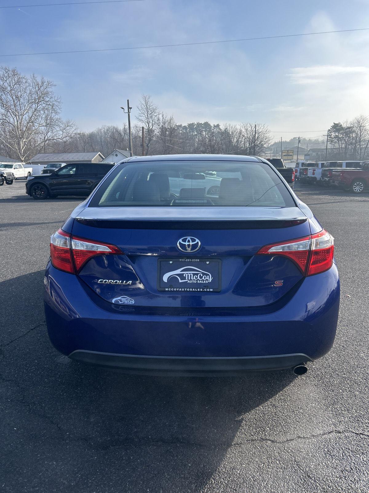 Thanks for checking out McCoy Auto Sales of Chambersburg, Pa. This Blue Crush Metallic 2014 Toyota Corolla S Plus is a stunner! An amazing color paired with some sporty 2 tone alloy wheels makes this S plus one you won't want to take your eyes off of! It includes a power sunroof, rear spoiler, and a host of standard safety features that Toyota is famous for! Get yourself a gas-saving commuter today! This is a local trade and would be a great addition to your garage!!