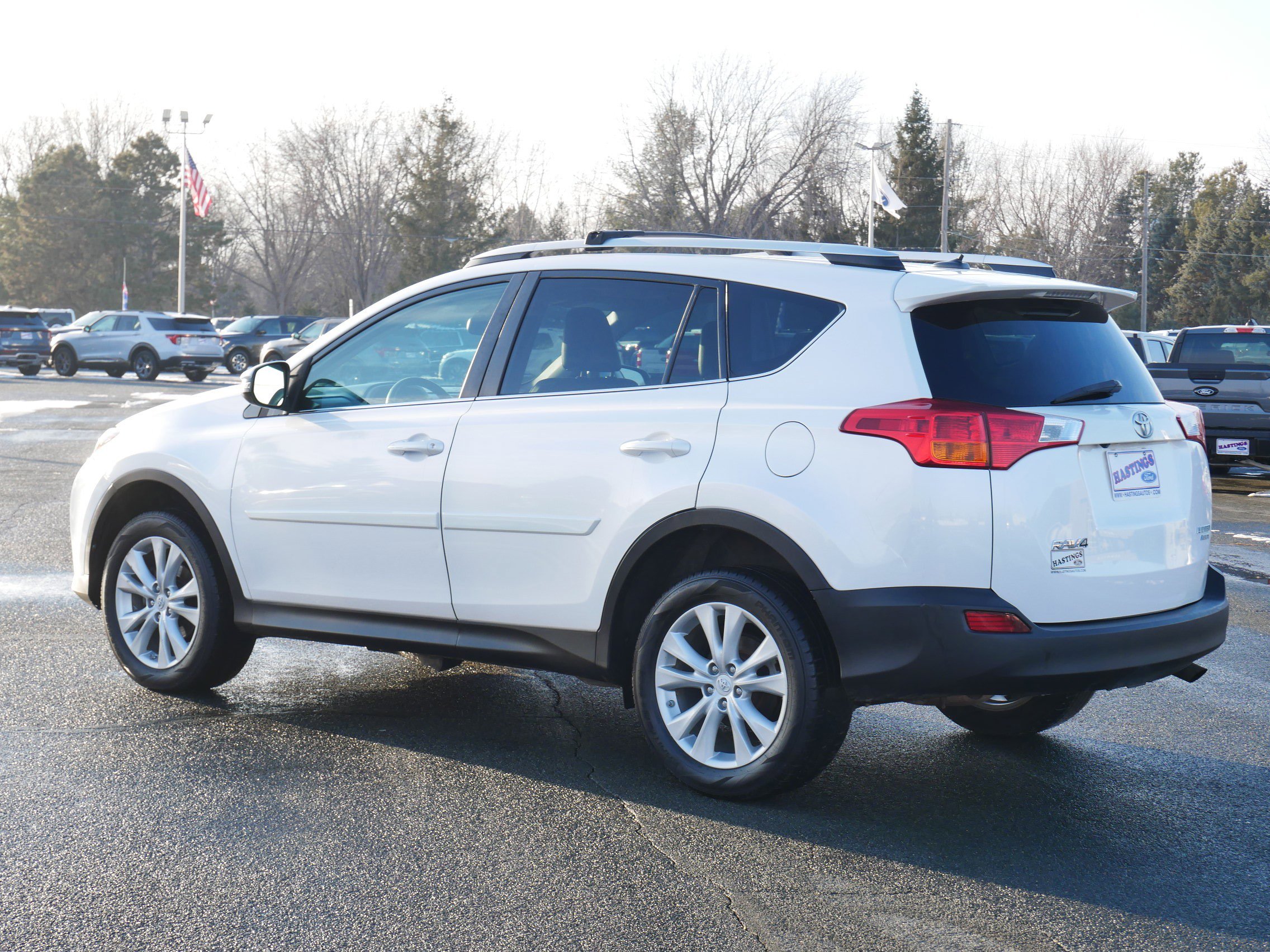 The 2014 Toyota RAV4 Limited AWD combines Toyota reliability, premium comfort and all-weather confidence in a versatile compact SUV. Powered by a fuel-efficient 2.5L engine paired with a smooth automatic transmission and all-wheel drive, the RAV4 delivers confident year-round traction. The Limited trim adds upscale touches including leather-trimmed seating, heated front seats, dual-zone automatic climate control, power liftgate, sunroof and premium alloy wheels. Technology features include a touchscreen infotainment system, Bluetooth connectivity, navigation, premium audio and a rearview camera for added convenience. With spacious seating for five and a flexible cargo area, the RAV4 is well-suited for commuting, family errands and weekend travel. Safety features such as stability control, traction control and multiple airbags provide peace of mind, making the RAV4 Limited a smart choice for drivers seeking comfort, efficiency and Toyota's long-standing reputation for dependability!