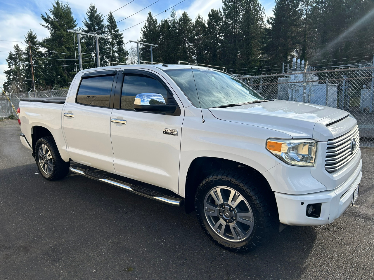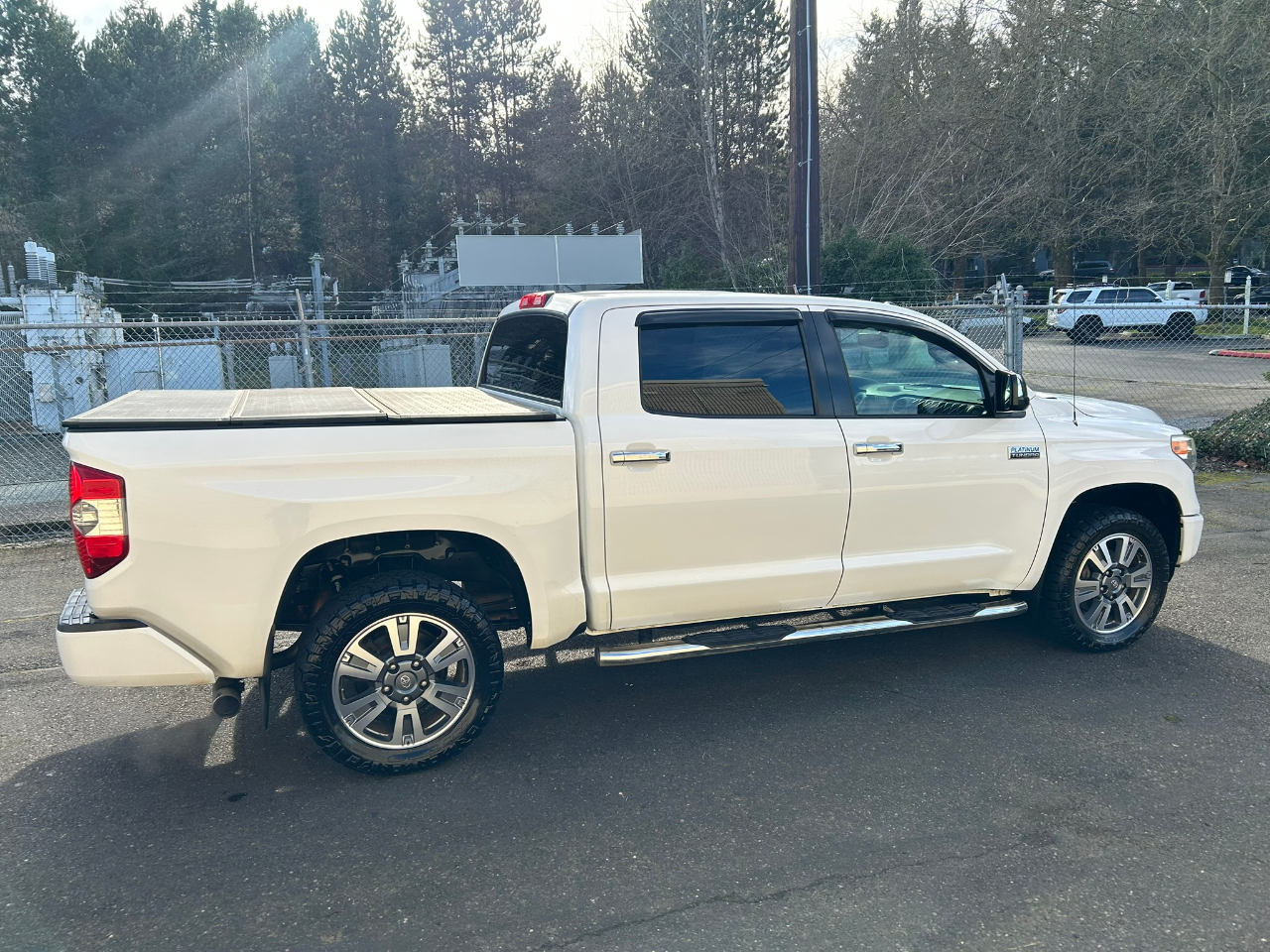 2014 Toyota Tundra Crew Max Platinum 4WD 5.7L V8 with 129k miles on it. Clean title/low miles. Stock Tundra CrewMax!! Loaded up just like you like. Equipment includes navigation, backup camera, Bluetooth, power sliding rear window, towing pkg, 20 inch premium alloy wheels, heated leather seats, sunroof, floor mats, bedliner, running boards, JBL sound, and of course it is 4WD. Ready for its new home. Good Looking Pickup!! White on Black!! Come and get it!! Give us a call if you are interested. We currently have a nice selection of late model Toyota's in stock. Check out our website to view our latest inventory.