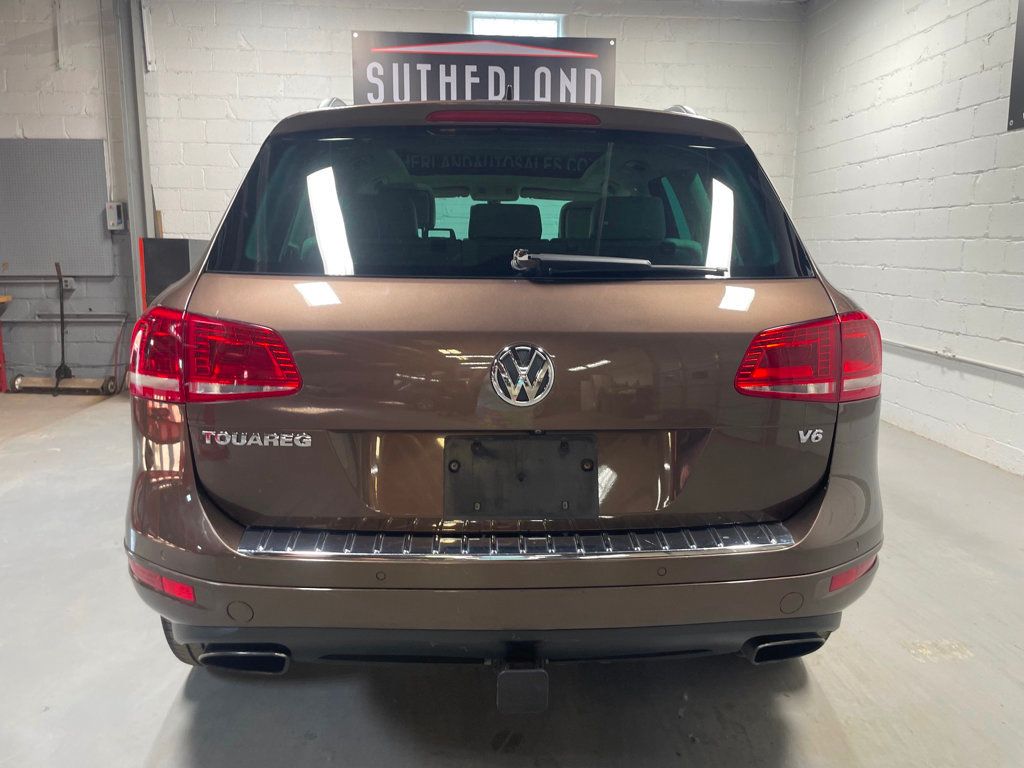 Sutherland Auto is proud to introduce our new 2014 Volkswagen Touareg V6 Executive to our inventory! It has a 3.6L V6 engine with Automatic transmission and AWD! The exterior has the Toffee Brown Metallic exterior and Cornsilk Beige interior and includes several optimal luxuries and features. Excellent interior, carpets, seats, dashboard, panels, headliner, exterior, paint, trim condition, and glass condition. No visible dents, rust, known accidents, or bodywork. No known mechanical problems.