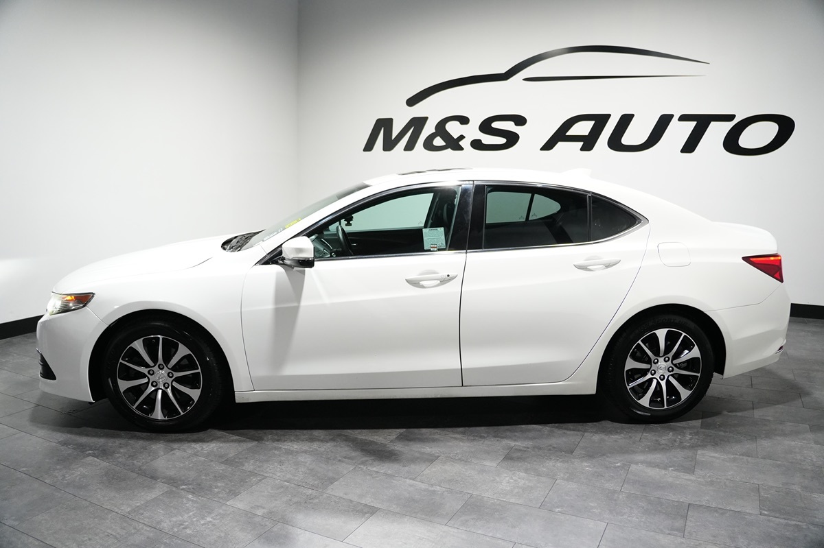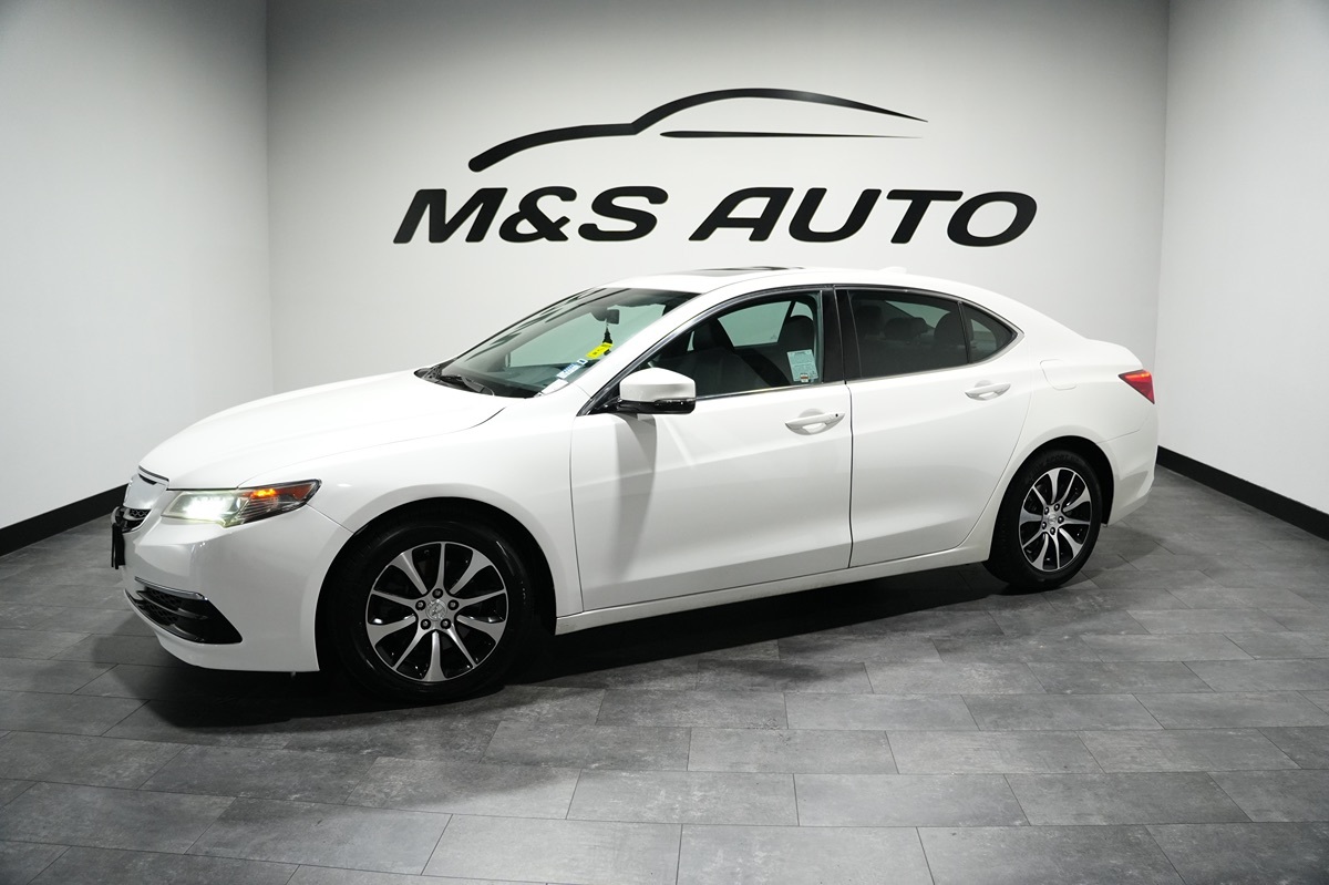 The 2015 Acura TLX 4dr Sdn FWD Tech in Bellanova White Pearl is an embodiment of refinement and cutting-edge technology. With its sleek and aerodynamic silhouette, this sedan exudes a sophisticated presence on the road. Complemented by the LED headlights, this vehicle ensures a bright and clear journey even on the darkest roads. Under the hood, the TLX is powered by a responsive 2.4L 4-cylinder engine, facilitating a smooth and efficient driving experience. The interior, adorned in a refined Ebony color, encapsulates luxury with premium materials and a thoughtfully designed layout. Equipped with a moonroof, occupants can enjoy natural light and fresh air at the touch of a button. Safety is prioritized with features like the blind spot monitor, forward collision warning, and lane departure warning systems. The multi-zone climate control provides personalized comfort for all passengers, while the premium sound system ensures an unparalleled audio experience. With navigation, a backup camera, and rain-sensing wipers, the TLX is designed to meet all the needs of a modern driver.