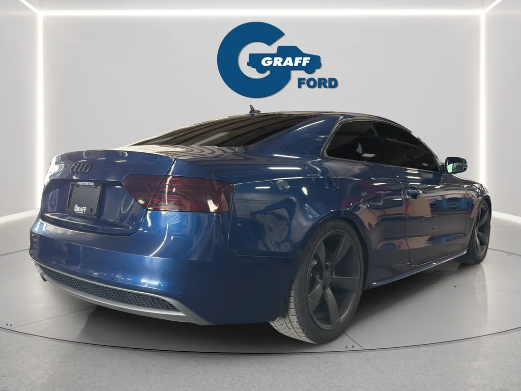The 2015 Audi A5 2.0T Premium Plus Coupe offers a compelling blend of style, performance, and luxury. With a striking Blue Metallic exterior and a sophisticated black leather interior, this used vehicle exudes elegance on every drive. Powered by a turbocharged 2.0-liter four-cylinder engine producing 220 horsepower and 258 lb-ft of torque, it delivers spirited performance while maintaining impressive fuel efficiency of up to 31 mpg highway. The 8-speed automatic transmission with Tiptronic shifting ensures smooth acceleration, complemented by Audi’s renowned quattro all-wheel drive system for confident handling in all conditions. This coupe’s sleek body features a sunroof, xenon headlights, fog lights, and a sporty stance that turns heads. Inside, comfort is paramount with heated and memory front seats, keyless entry, push start, and Bluetooth connectivity, making every journey enjoyable and convenient. Satellite radio readiness, a 6.5-inch infotainment screen, and a premium nine-speaker surround sound system with a subwoofer elevate the driving experience, ensuring entertainment options are abundant. The 2015 Audi A5 combines advanced safety and security features to protect its occupants. Dual front knee airbags, four-wheel ABS, and electronic brake drying enhance braking performance and stability. Auto-locking power door locks provide added security, while the electronic parking brake offers ease of use. These features work together to deliver a confident and secure ride, whether navigating city streets or highway cruising. This vehicle is equipped with dual front knee airbags and four-wheel ABS for enhanced safety. Auto-locking power door locks ensure security when parked, while brake drying improves braking performance in wet conditions. The electronic parking brake adds convenience and control, making this coupe a secure choice for daily driving. Entertainment comes alive with a 5.1 surround sound system featuring nine speakers and a dedicated subwoofer, all processed through digital sound technology for crystal-clear audio. The 6.5-inch infotainment screen offers easy access to media and vehicle information.