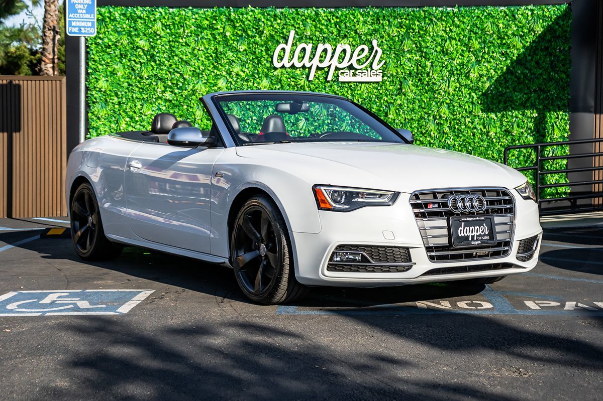 Our 2015 Audi S5 3.0T Premium Plus quattro Convertible in White in will wow you with its incredible performance and comfort. Motivated by a SuperCharged 3.0 Liter V6 generating 333hp paired to a 7 Speed Automated Manual transmission for rapid acceleration. This All Wheel Drive luxury convertible provides a superb driving experience highlighted by nearly 26mpg on the highway, a smooth ride, and fabulous handling. Our S5's stunning silhouette also stands out thanks to a power soft top, HID headlamps, distinctive S-specific bumpers, side skirts, and lightweight alloy wheels. Our S5 Premium Plus pampers you on every drive with heated power leather front seats with driver memory, a multi-function steering wheel, keyless entry/ignition, ambient lighting, gorgeous aluminum trim, and tri-zone automatic climate control. The full-color MMI infotainment system includes Bluetooth®, available satellite radio, USB/Aux inputs, and concert-quality audio for your entertainment needs. Thanks to a variety of safety technologies, confidence and peace of mind come standard in our Audi. Rain-sensing wipers, advanced airbags, stability/traction control, and ABS are just a few of the innovations that surround you. Our S5 Premium Plus convertible has been designed with you in mind, so save this Page and Call for Availability. We Know You Will Enjoy Your Test Drive Toward Ownership!