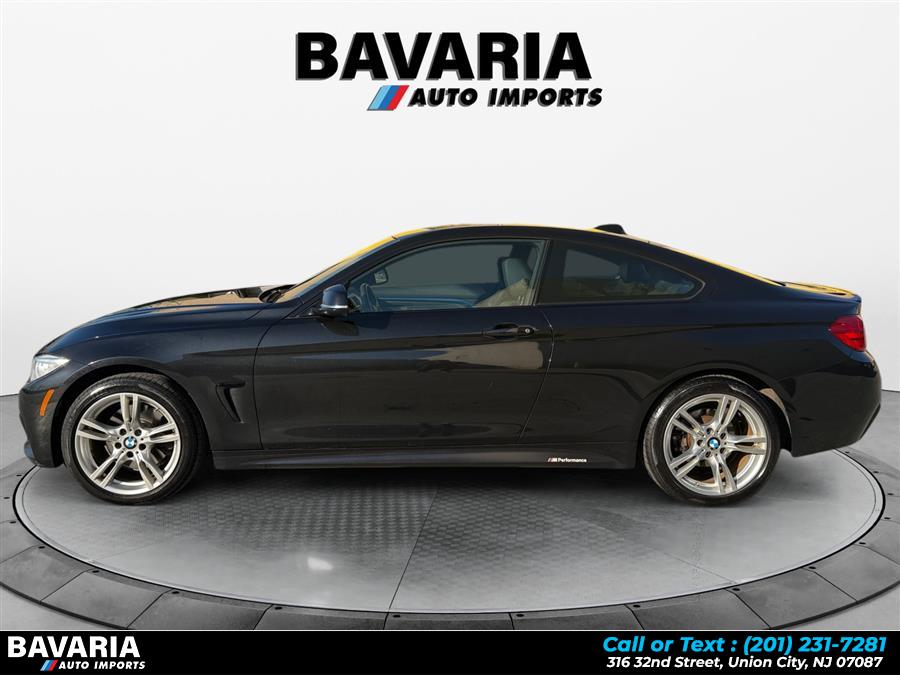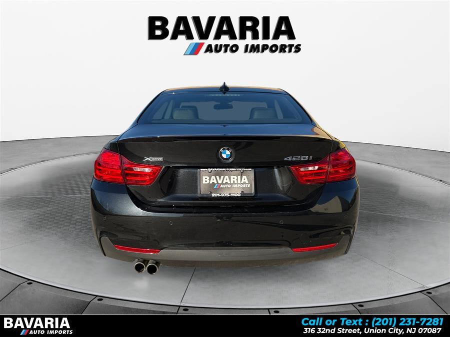 2015 BMW 4 Series 2dr Cpe 428i xDrive AWD SULEV, available for sale in Union City, New Jersey. This vehicle features a 2.0L DOHC 16-Valve 4-Cylinder Turbocharged engine, full-time all-wheel drive, and a Sport Automatic transmission with dual shift mode. The exterior is Black Sapphire Metallic, and the interior is Black. The car offers a comfortable and luxurious driving experience with advanced features and SULEV emissions.