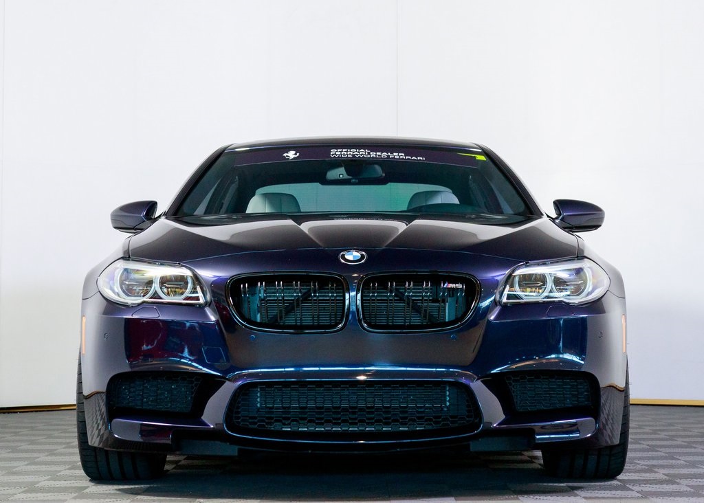 Wide World Ferrari is proud to present this exceptional 2015 BMW M5 Competition, an extremely clean, low-mileage example showing just 27,616 miles and accompanied by a clean Carfax. As the pinnacle of BMWs executive performance sedan lineup, the M5 Competition seamlessly blends supercar-level performance with luxury, comfort, and everyday usability. Finished in the striking Imperial Blue Metallic, this M5 boasts a timeless yet aggressive presence. The Competition Package enhances the car's visual and dynamic appeal with purposeful design cues, muscular proportions, and a road-dominating stance. Subtle performance accents and signature M details emphasize its high-performance pedigree while maintaining the refinement expected of a flagship BMW sedan. The interior is equally impressive, featuring a beautifully maintained Silverstone leather cabin that provides a crisp and elegant contrast to the deep blue exterior. The driver-focused cockpit is appointed with premium materials, supportive multi-contour sport seats, and M-specific trim throughout. Every detail reflects BMW's commitment to craftsmanship, comfort, and performance-focused design. Under the hood, the M5 Competition is powered by its legendary twin-turbocharged V8, delivering exhilarating acceleration, effortless highway cruising, and commanding power on demand. This example is further elevated by the inclusion of carbon ceramic brakes, offering exceptional stopping power, reduced unsprung weight, and long-term durability, an increasingly rare and highly desirable performance option. As the only 4-Time Cavallino Winning Ferrari Center in the tri-state area and one of the first Ferrari Centers in North America, we pride ourselves on exceptional service. We assist with all aspects of your purchase, including trade-ins, shipping, registration, non-reported financing, and customizations. Conveniently located in Rockland County, just under 30 miles from Manhattan.