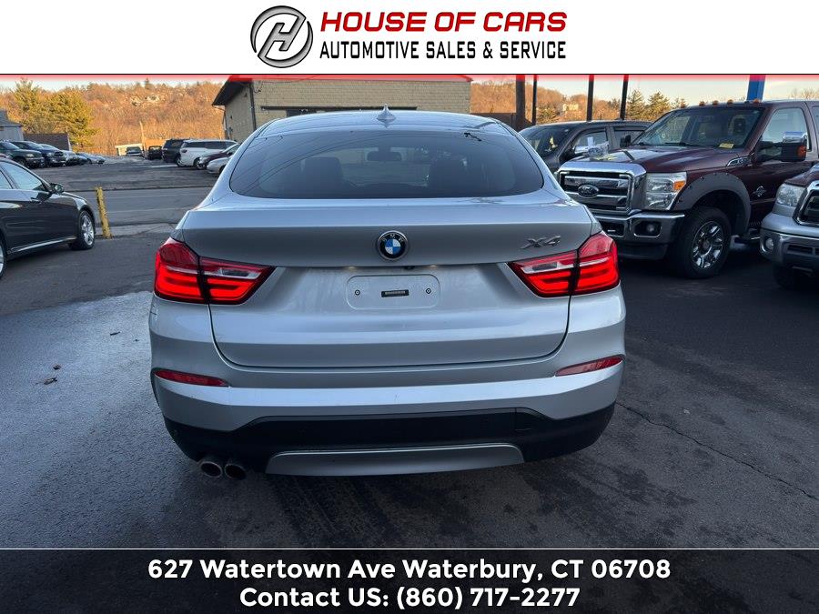 2015 BMW X4 AWD 4dr xDrive28i, available for sale in Waterbury, Connecticut. This vehicle features a 2.0L TwinPower Turbo In-Line 4-Cylinder engine and a full-time all-wheel drive system. The exterior is Mineral Silver Metallic, and the interior is Black Leather. The car is equipped with an 8-speed automatic transmission and a range of comfort and safety features. Please confirm the accuracy of the specifications provided above with the dealer's representative.