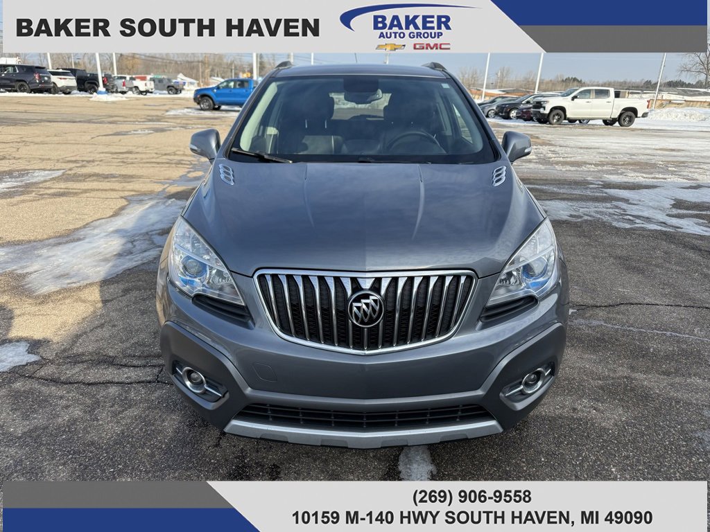 Satin Steel Gray Metallic 2015 Buick Encore Leather AWD 6-Speed Automatic Electronic with Overdrive ECOTEC 1.4L I4 SMPI DOHC Turbocharged VVT AWD, Preferred Equipment Group 1SL. Serving the South Haven, Kalamazoo, Muskegon, and Grand Rapids area since 2005. Recent Arrival! 23/30 City/Highway MPG Awards: * JD Power Automotive Performance, Execution and Layout (APEAL) Study * 2015 IIHS Top Safety Pick * 2015 KBB.com 5-Year Cost to Own Awards * 2015 KBB.com Brand Image Awards Reviews: * Small doesn’t have to mean skimpy. The 2015 Buick Encore SUV may be compact, but its bold appearance, long list of luxury and electronic trappings and modern drivetrain make it an exceptionally good value. Source: KBB.com * Quiet interior; good fuel economy; long list of tech and safety features. Source: Edmunds