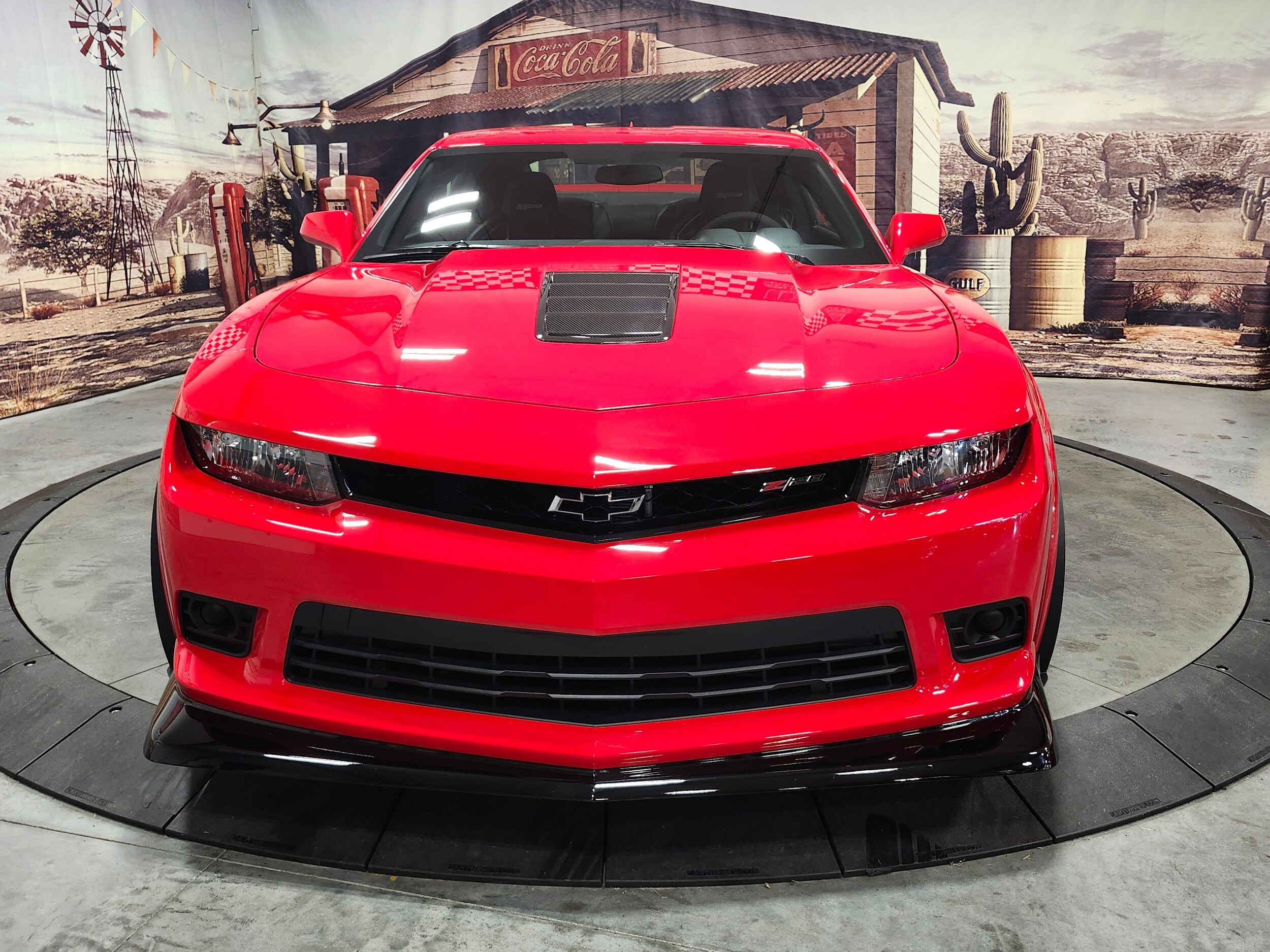 This 2015 Chevrolet Camaro Z/28 with only 118 miles is one of 1,292 examples produced for the model year. This car was awarded to Camilo Pardo, credited as the chief designer for the 2005 and 2006 Ford GT, after winning the Motor City Masters automotive design reality television show. The quarter panels are signed by Camaro designer Tom Peters, the former Vice President of General Motors Global Design Edward Welburn, and former owner Camilo Pardo. Power is provided by a hand-assembled 7.0-liter LS7 V8 mated to a Tremec TR6060 six-speed manual transmission and a 3.91:1 limited-slip differential. The LS7 V8 features a dry-sump lubrication system and was rated at 505 horsepower and 481 lb-ft of torque when new. Black-finished 19 Y-spoke forged alloy wheels are mounted with Perelli P-zero tires measuring 305/30/ZR19. The car is equipped with a fully independent suspension, spool-valve dampers, and Performance Traction Management. Stopping power is provided by Z/28-branded Brembo calipers over two-piece drilled carbon-ceramic rotors. A dual-mode performance exhaust was equipped as standard. The car is finished in Red Hot and features a front splitter, an optional extended decklid spoiler, and an aluminum hood with a vented carbon-fiber insert. The Recaro front sport seats are upholstered in black leather with microfiber suede inserts and feature Z/28 logos embroidered on the headrests. The multifunction steering wheel is wrapped in microfiber suede and frames a 200-mph speedometer, a tachometer, and supplementary gauges. Amenities include air conditioning, aluminum pedals, a CD stereo, a microsuede-wrapped shift knob, and power windows, side mirrors, and door locks. Additional equipment includes daytime running lamps, Z/28 badging, wheel arch extensions, side skirts, and polished quadruple exhaust outlets.
