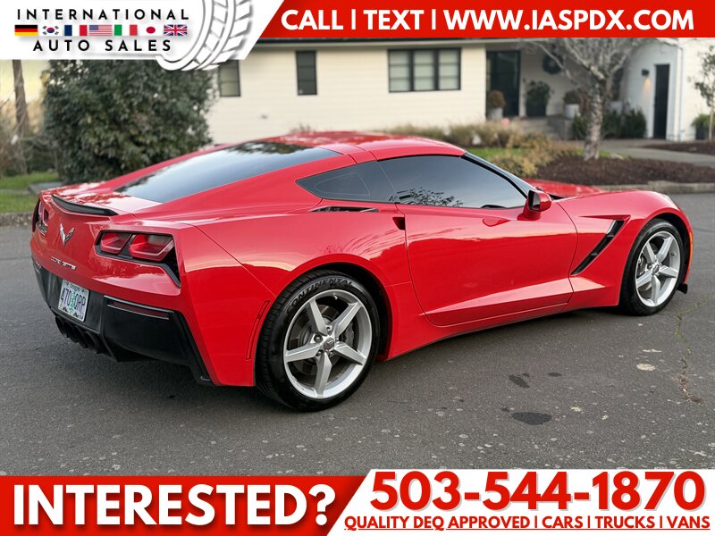 The 2015 Chevrolet Corvette Stingray 2-Door Coupe features a 6.2L V8 engine with 455hp and 460ft. lbs. of torque. This vehicle offers a range of premium features and safety technologies, making it a standout in the Corvette lineup. With a clear title and a history of reliability, the Corvette Stingray is designed for both performance and comfort.
