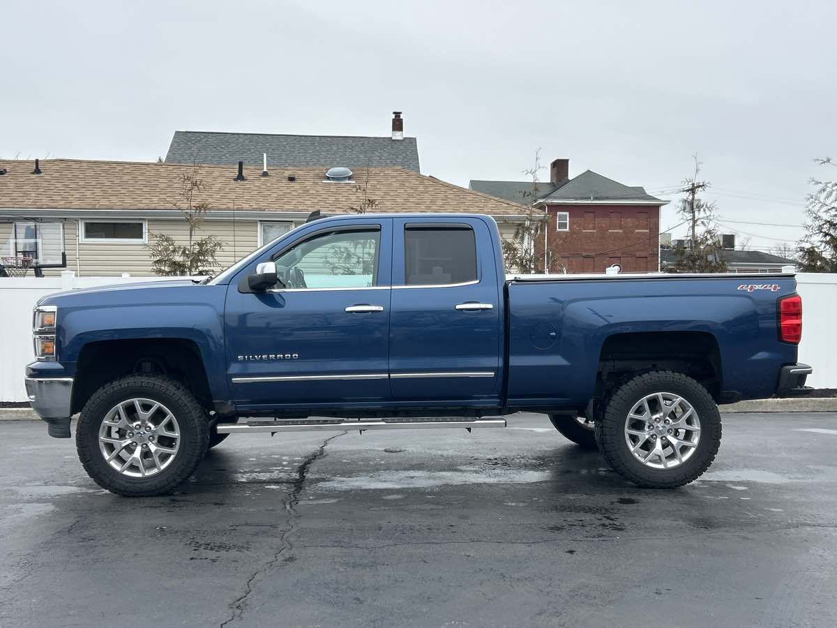 Clean AutoCheck!!! Excellent Condition / No Rust !!! Lifted / 35" Tires!!! LOW Miles!!! Please Call for Vehicle Availability 732-787-3600. The 2015 Chevrolet Silverado 1500 4WD Double Cab 143.5" LTZ w/1LZ is an impressive blend of power, style, and sophistication. Its exterior is painted in a stunning Deep Ocean Blue Metallic, which not only accentuates its sleek lines but also provides a striking contrast to its robust chrome wheels measured at 20" x 9" (50.8 cm x 22.9 cm). This Silverado is designed for those who demand both performance and elegance in a truck. Under the hood, the Silverado houses a formidable 5.3L 8-cylinder engine that ensures exceptional power and towing capabilities. The four-wheel-drive drivetrain allows this truck to effortlessly tackle any terrain, making it as dependable in off-road adventures as it is on city streets. Inside, the Jet Black interior exudes sophistication and is matched with top-tier amenities, including the Bose sound system featuring 6 premium speakers for crystal-clear audio. The Chevrolet MyLink Audio System emphasizes modern connectivity with an 8" diagonal color touch navigation that integrates AM, FM, SiriusXM, and USB ports seamlessly. This sophisticated system ensures drivers and passengers are entertained and connected no matter where the journey may lead. Beyond its impressive tech and aesthetics, the Silverado's Sport 1LZ trim encapsulates a perfect fusion of sporty appeal and everyday practicality, ensuring it remains a favorite among discerning truck enthusiasts.