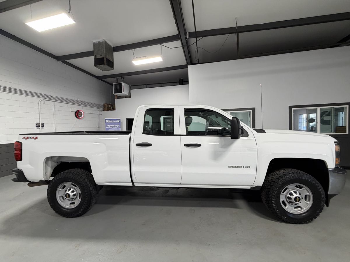 The 2015 Chevrolet Silverado 2500HD 4WD Double Cab Work Truck stands out with its robust Summit White exterior, designed to handle tough jobs while maintaining a sleek appearance. Equipped with a powerful 6.0L V8 engine, this truck delivers impressive performance, whether you're on the highway or off-road. Its 144.2" length and 4WD drivetrain ensure it can tackle a variety of terrains with ease, enhanced by the durable LT265/70R17E all-terrain blackwall tires. Inside, the cabin showcases a functional Dark Ash interior accented with Jet Black highlights, providing both comfort and practicality. Integrated into the dash is the Chevrolet MyLink audio system, featuring a 4.2" diagonal color screen and AM/FM stereo with USB ports for versatile media options. Safety and convenience are prioritized with features like a rear vision camera and integrated trailer brake controller, making towing straightforward and secure. Additionally, the trailering equipment ensures that hauling heavy loads is a breeze, reflecting the truck's design tailored specifically for work purposes.