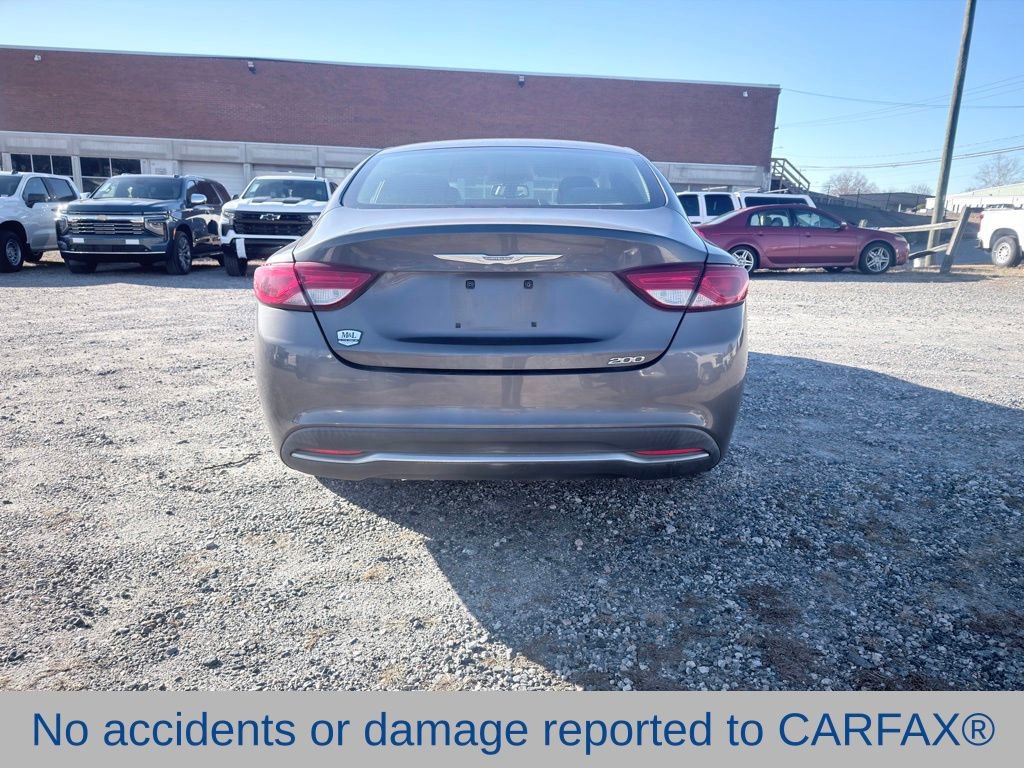 Clean CARFAX. Recent Arrival! Priced below KBB Fair Purchase Price! 2015 Chrysler 200 Limited Granite Crystal Metallic Clearcoat Limited Check out this 2015 Chrysler 200 Limited available at Parks Chevrolet in Kernersville, NC. Offered at just $8000, this Chrysler 200 won’t last long. This FWD Chrysler 200 Limited is powered by a 2.4L I4 MultiAir with only 96629 miles and includes these features and benefits. Local Trade In, Black Cloth, 6 Speakers, ABS brakes, Compass, Four wheel independent suspension, Quick Order Package 28E, Radio: Uconnect 5.0 AM/FM/BT, Remote keyless entry, Steering wheel mounted audio controls, Wheels: 17 x 7.5 Tech Silver Aluminum. Odometer is 31955 miles below market average! Awards: * 2015 IIHS Top Safety Pick+, Top Safety Pick+ * 2015 KBB.com 10 Best Sedans Under $25,000 * 2015 KBB.com Best Buy Awards Finalist. Price excludes applicable tax, tag, and fees. Price may not include dealer installed accessories. Contact us online at www.ParksChevy.com or give us a call to get your questions answered, request a personalized quote, or schedule your test drive today. Parks Chevrolet Kernersville is proud to serve customers across North Carolina. Our prices cannot be beat and our service is always backed by the Parks Promise. Come visit us at 615 NC-66, Kernersville, NC 27284! We offer a wide selection of New Chevrolet, Commercial Chevrolet Utility Trucks, and Pre-Owned Vehicles. Final Price includes $1000 Finance Bonus. $1000 dealer finance discount (must qualify and finance with financing arranged by dealer).