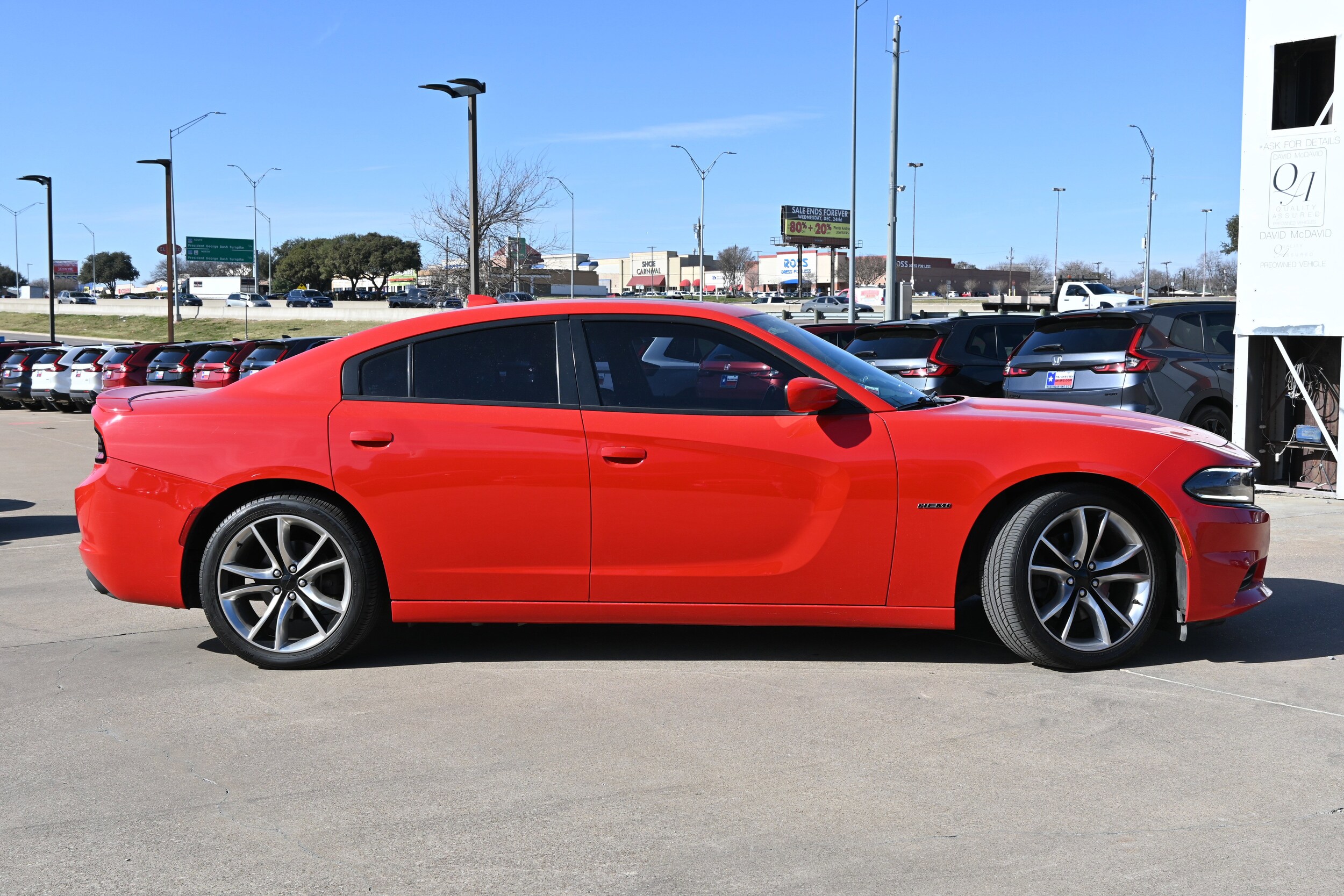This 2015 Charger has a very popular Torred exterior color with Black that looks fantastic! Bluetooth Heated Front Seats Keyless Entry Remote Start Backup Camera Navigation Sunroof/ Moonroof priced to sell quickly! Research suggests it will not be available for long. Carfax One Owner. This Torred 2015 Dodge Charger Road/Track is priced to sell fast! Please visit our website to view the complete Value Report, Vehicle History Report and to learn more about this Charger at https://www.mcdavidhondairving.com/. David McDavid Honda of Irving prides itself on value pricing its vehicles and exceeding all customer expectations! The next step? Give us a call to confirm availability and schedule a hassle free test drive (469) 405-3340! We are located at: 3700 W Airport Fwy, Irving, TX 75062. For more than 70 years, David McDavid Honda of Irving has been serving the automotive needs of drivers throughout the Dallas Fort Worth Metroplex. We stock a large selection of new and used Honda cars at great prices. If you need assistance with choosing a new car, obtaining financing, or have service and repair questions, our friendly and knowledgeable staff will get your questions answered. Our dealership is located in Irving, but we proudly serve the Dallas, Fort Worth, Arlington, and Grand Prairie, and DFW area.