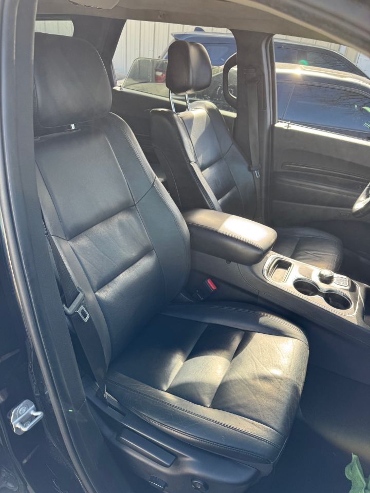 Feel the power of the road beneath you in this sleek and stylish Black 2015 Dodge Durango. With a 3.6L V6 engine roaring under the hood, this beauty is ready to take you on any adventure with confidence. The smooth handling of the full-time all-wheel drive ensures a comfortable ride no matter where your journey leads. Load up the 1420 lb maximum payload and hit the road with ease, knowing you have the power to tow whatever you need with the included trailer sway control. Step inside the cabin and be greeted by luxury at every turn. Sink into the heated leather seats and grip the leather steering wheel, feeling the quality craftsmanship at your fingertips. The 8.4" touchscreen display and premium sound system provide entertainment at your command, while the rear parking sensors and backup camera give you peace of mind when maneuvering in tight spots. Safety features like dual front and side airbags, rear child safety locks, and low tire pressure warning ensure you and your passengers are protected on every drive. Don't just drive, experience the thrill of the open road in this impressive Dodge Durango.