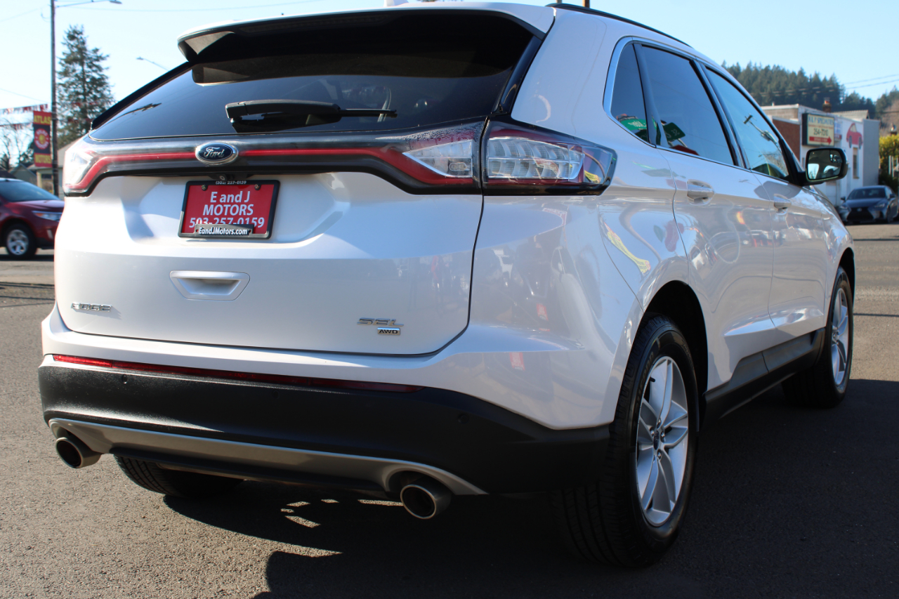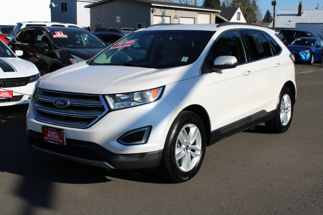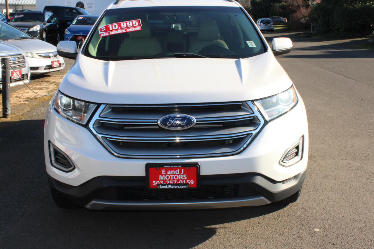 Hop into this sleek white 2015 Ford Edge and let the good times roll! With a sporty design and all-wheel drive, this car is ready to tackle any adventure you throw its way. Powered by a 3.5L V6 engine, this Edge delivers impressive performance while still offering a smooth ride. Cruise in style with the body-colored accents, LED brake lights, and chrome details that make this car stand out from the crowd. Step inside and you'll find a spacious interior with comfortable cloth seats and ample storage space. Keep connected with Bluetooth connectivity and enjoy your favorite tunes with the 6-speaker sound system. The dual-zone air conditioning ensures everyone stays comfortable no matter the weather outside. Safety is a top priority with features like rear parking sensors, a backup camera, and multiple airbags throughout the vehicle. Plus, rest easy knowing a Carfax report is available to give you peace of mind about your purchase. Don't miss out on this well-maintained, reliable Ford Edge - it's the perfect blend of style, performance, and functionality!