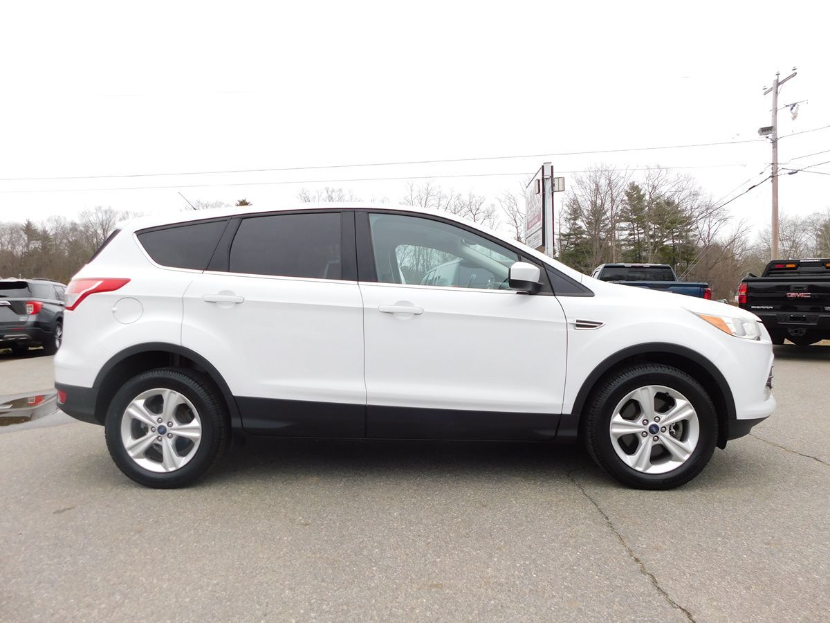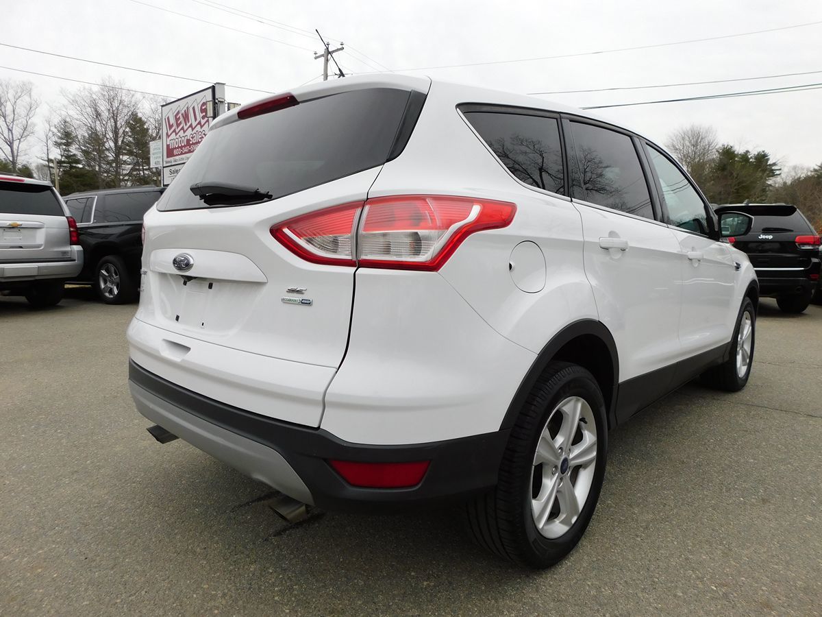 The 2015 Ford Escape 4WD 4dr SE in Oxford White exudes a modern yet timeless appeal, capturing attention with its sleek and aerodynamic design. Its striking exterior is complemented by a set of stylish alloy wheels and well-defined lines that emphasize its sporty character. This model is equipped with a robust 1.6L EcoBoost engine, delivering an optimal balance of power and fuel efficiency to navigate various terrains with ease. Step inside to find a Charcoal Black interior that provides a refined and comfortable atmosphere for both driver and passengers alike. The cabin features high-quality materials, an intuitive layout, and ample space, ensuring every journey is a pleasant experience. With its advanced infotainment system and user-friendly controls, the Escape keeps you connected and entertained on the go. The 2015 Ford Escape 4WD 4dr SE is built with performance and practicality in mind, offering the confidence of a Four Wheel Drive drivetrain that caters to all your adventure-ready needs. It's not just about power and utility; the vehicle also prioritizes safety with features tailored to keep you and your loved ones protected. Smart technology and precise handling combine to make every drive smooth and controlled, further enhancing your driving comfort. Whether you're tackling daily commutes or weekend getaways, this Ford Escape is equipped to handle it all while making a bold statement in its Oxford White exterior.