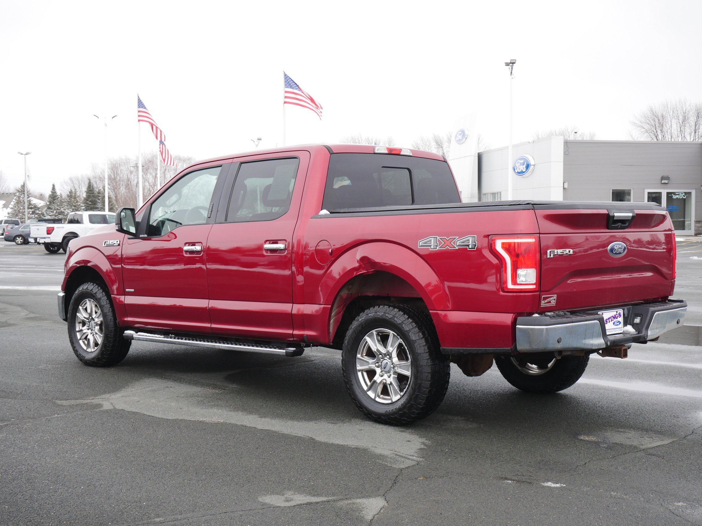 The 2015 Ford F-150 XLT SuperCrew 4x4 delivers proven capability, modern technology and everyday versatility in America's best-selling truck. Powered by the 3.5L EcoBoost V6 paired with a 6-speed automatic and electronic shift-on-the-fly 4WD, this F-150 provides strong towing capability. The spacious SuperCrew cab offers seating for up to six with a comfortable Medium Gray cloth interior, while the XLT Series adds SYNC with voice-activated technology, SiriusXM, rearview camera, remote start, reverse sensing system and power sliding rear window. Finished in Ruby Red Metallic Tinted Clearcoat, this F-150 XLT remains an excellent choice for drivers who need a truck that can tow, haul and handle daily driving with confidence and comfort!
