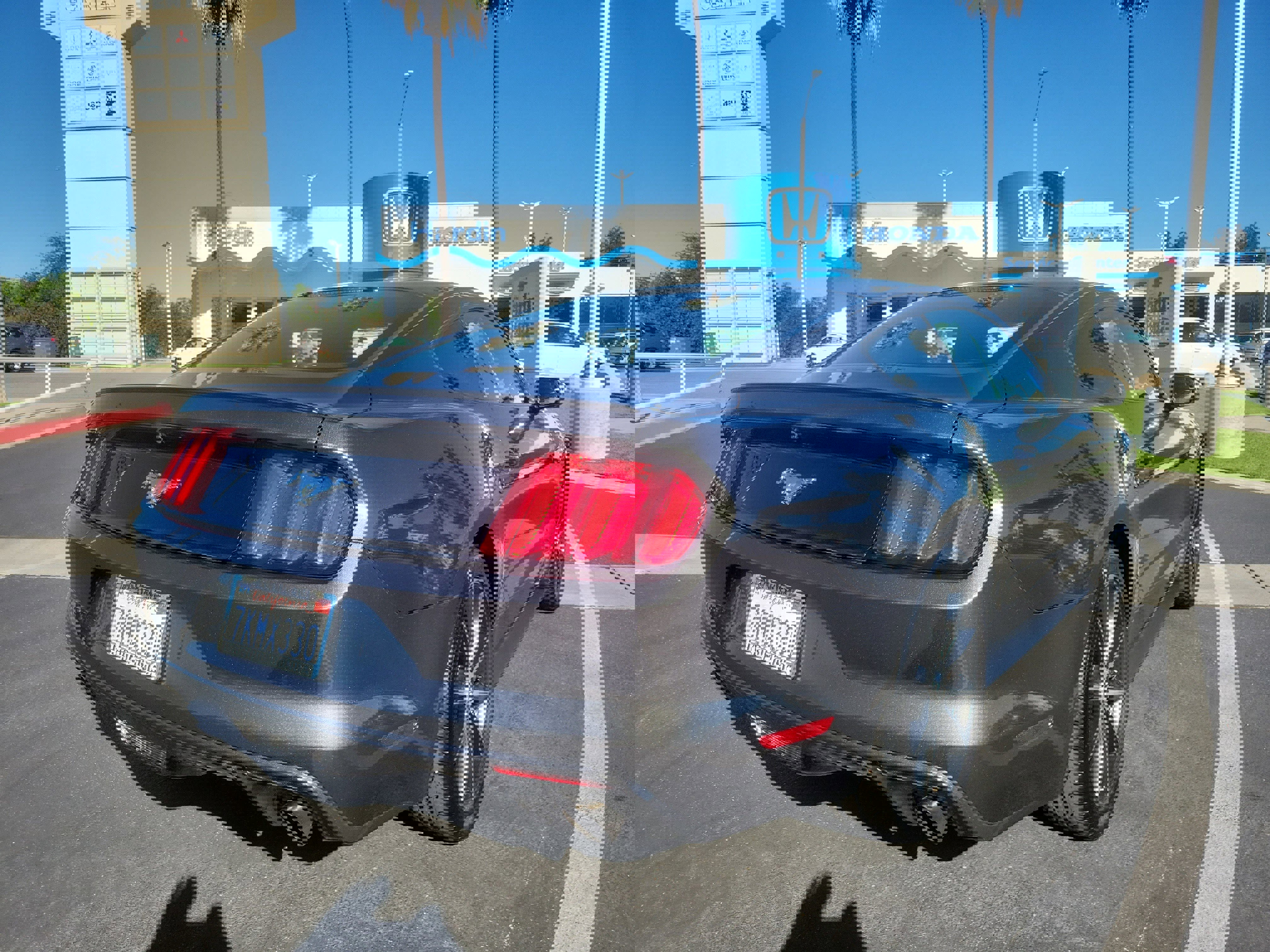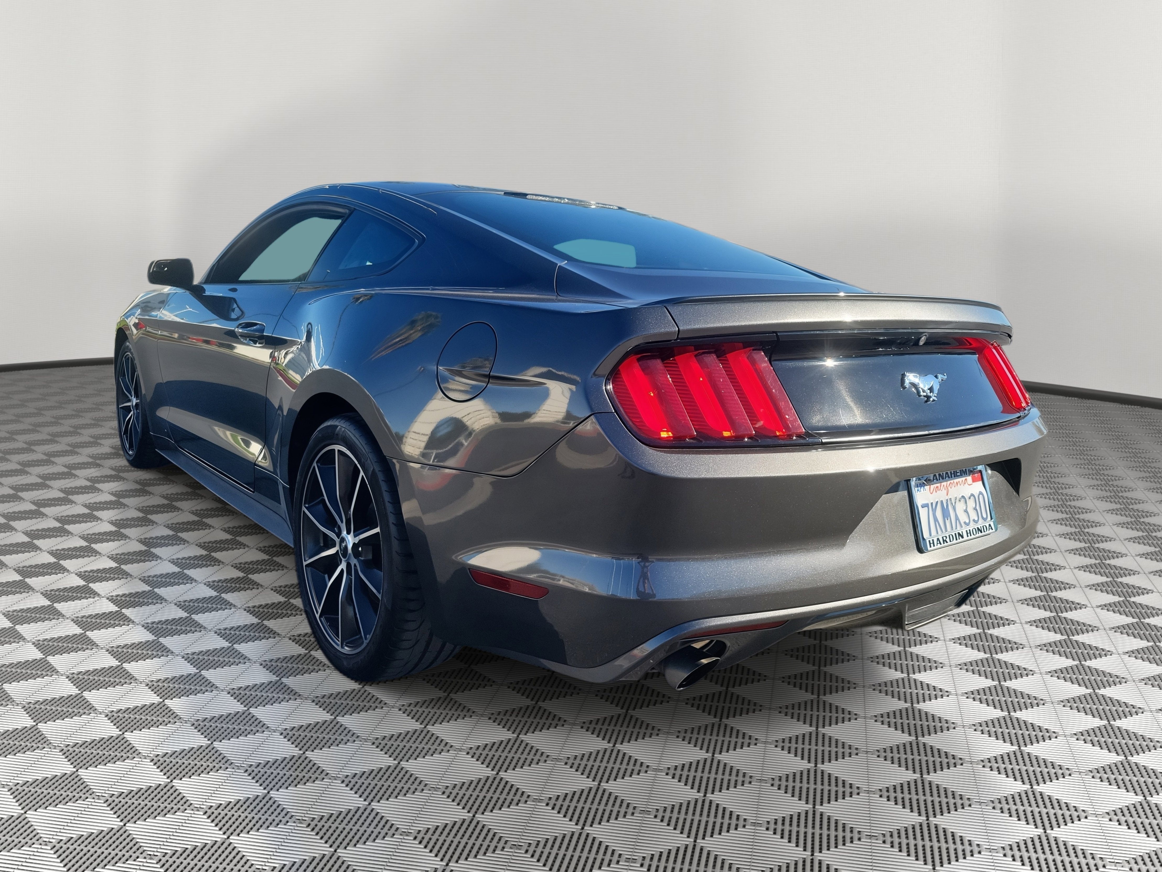 Gray 2015 Ford Mustang RWD 6-Speed Automatic with Select-Shift EcoBoost® 2.3L I4 GTDi DOHC Turbocharged VCT. Recent Arrival! 21/32 City/Highway MPG. Awards: 2015 KBB.com Best Buy Awards Finalist, 2015 KBB.com 10 Coolest New Cars Under $25,000, 2015 KBB.com Our 10 Favorite New-for-2015 Cars, 2015 KBB.com Brand Image Awards.