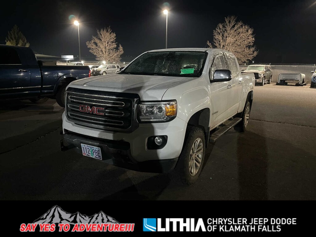 EPA 24 MPG Hwy/17 MPG City! Heated Seats, NAV, Tow Hitch, WiFi Hotspot, Remote Engine Start, Onboard Communications System, Back-Up Camera, 4x4, Alloy Wheels, Bed Liner, LPO, CHROME RECOVERY HOOKS, DRIVER ALERT PACKAGE AND MORE! GMC 4WD SLT with Summit White exterior and Cocoa/Dune leather appointed front seating interior features a V6 Cylinder Engine with 305 HP at 6800 RPM. Handling feels equally secure, with relatively little body lean when you're driving around turns. Also, the Canyon feels genuinely maneuverable from behind the wheel. Great Gas Mileage: 24 MPG Hwy. At Lithia Chrysler Jeep Dodge Ram of Klamath Falls, your satisfaction is at the top of our goals. This is true regardless of whether you're here shopping for a new or used vehicle, get a trade estimate, or apply for an auto-loan. Our new cars are aggressively priced and so are our pre-loved cars, trucks and SUVs. Our new Jeep, Chrysler, Dodge and Ram comes with our MVP protection package complimentary for 6 months! And we offer delivery within 100 miles radius at no cost; if you are shopping for a vehicle in this area.