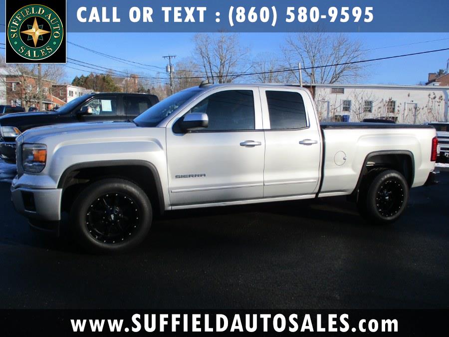 This 2015 GMC Sierra 1500 is available at Suffield Auto LLC in Suffield, Connecticut. It features a 5.3 L 8-cylinder engine, rear wheel drive, and a Quicksilver Metallic exterior with a Jet Black interior. The vehicle is in stock and ready for sale.