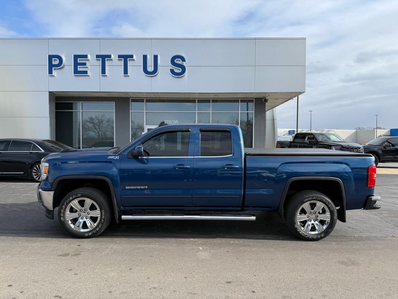 2015 GMC Sierra 1500 SLE 4WD Stone Blue Metallic. This 2015 GMC Sierra 1500 SLE Double Cab 4WD combines rugged capability, classic GMC styling, and everyday comfort. Powered by the proven EcoTec3 5.3L V8 engine paired with a 6-Speed Automatic transmission with Overdrive, this Sierra is built to handle work, towing, and weekend adventures with ease.